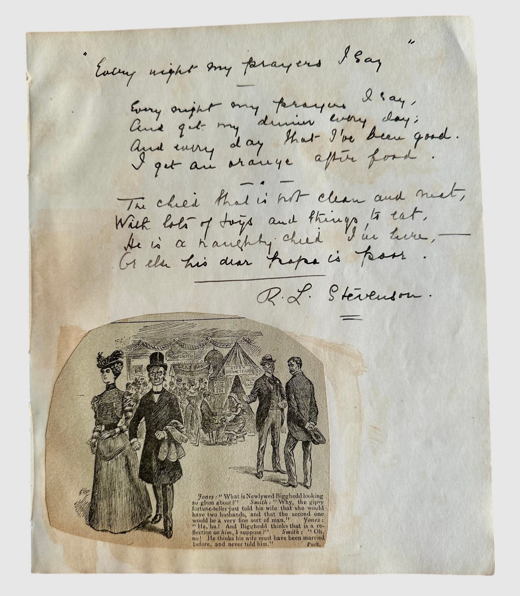 Hand Written Page In Ink, The Poem System By Robert Louis Stevenson Signed R L Stevenson