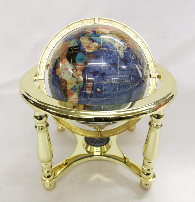 Terrestrial Globe set precious stones, on lacquered metal gimbal, in original box (TABLE 4)