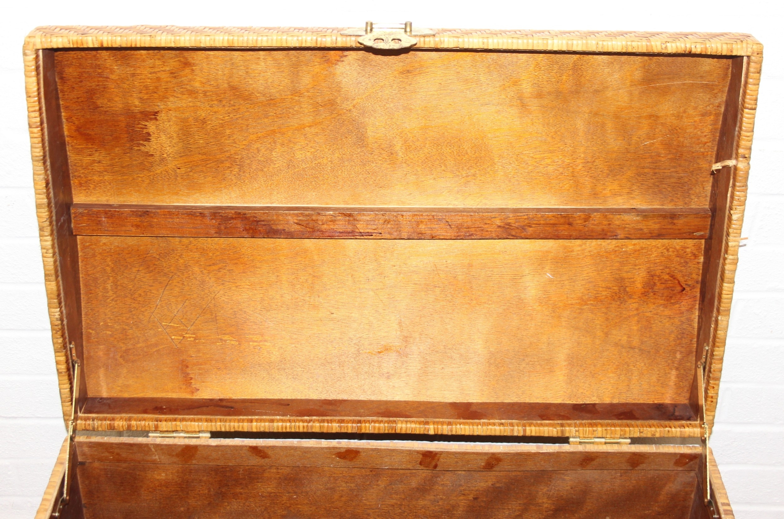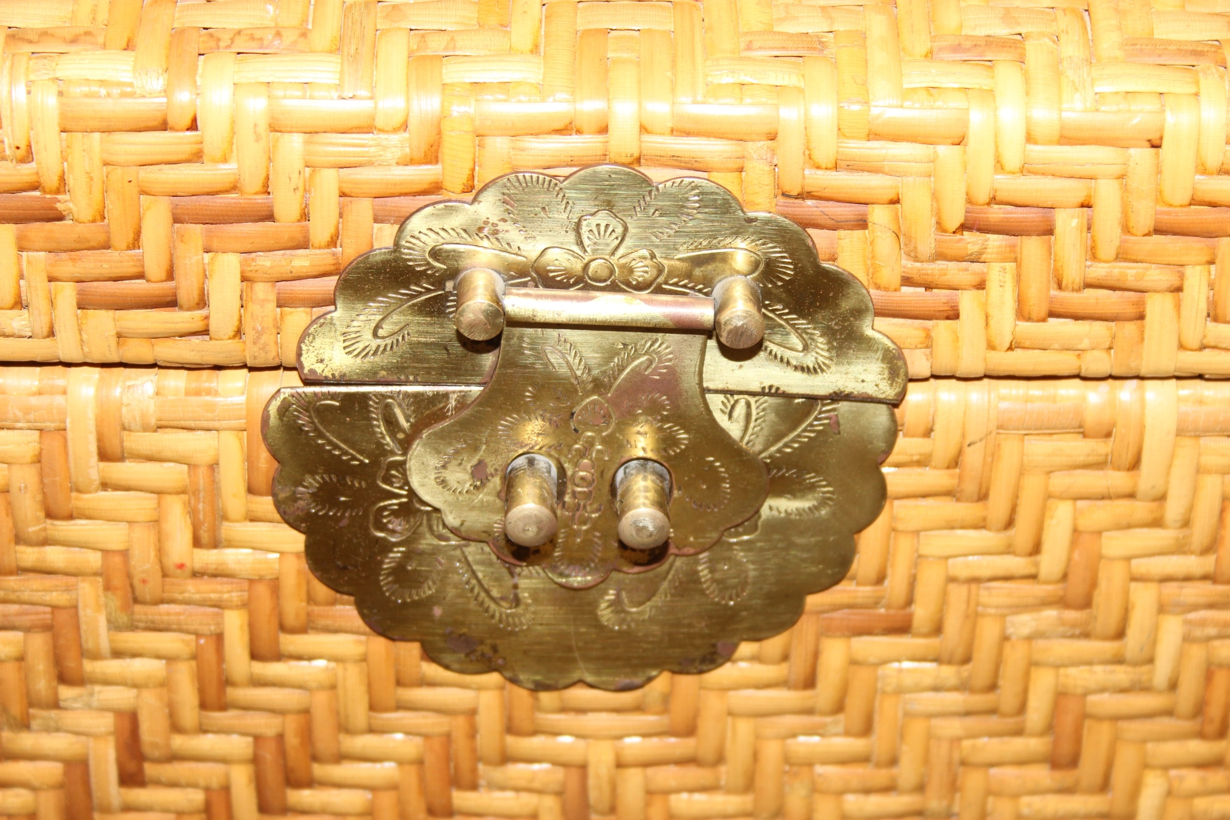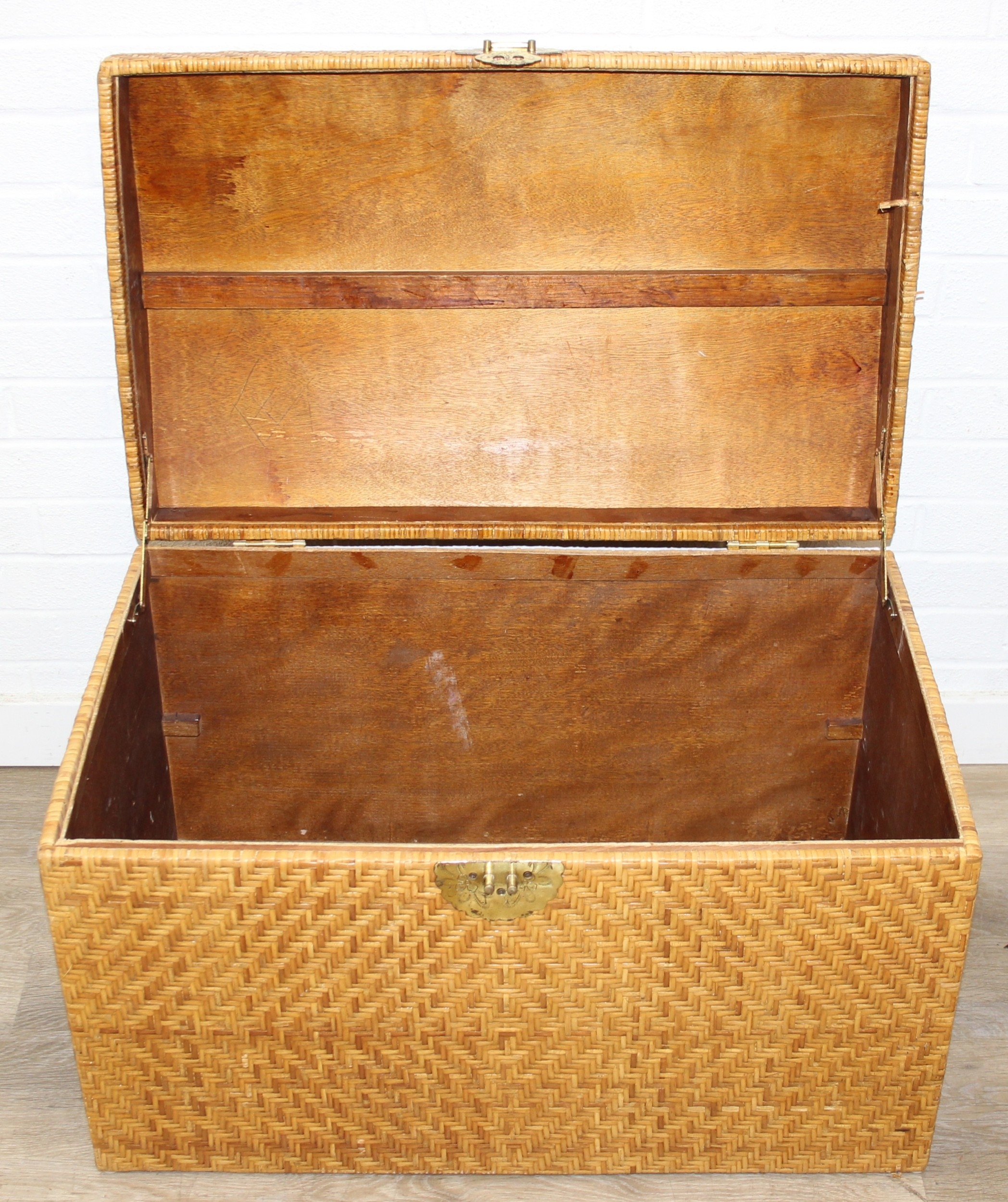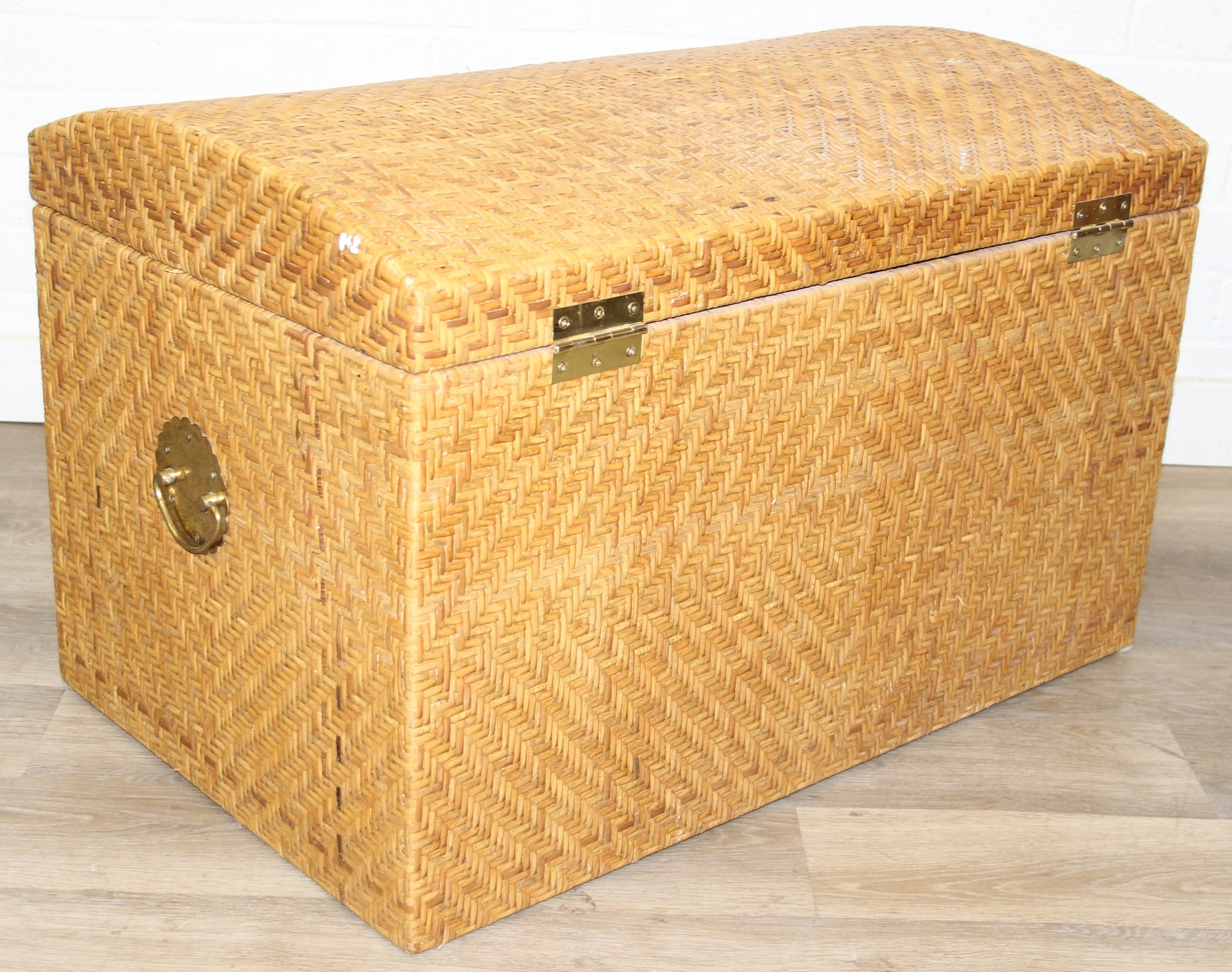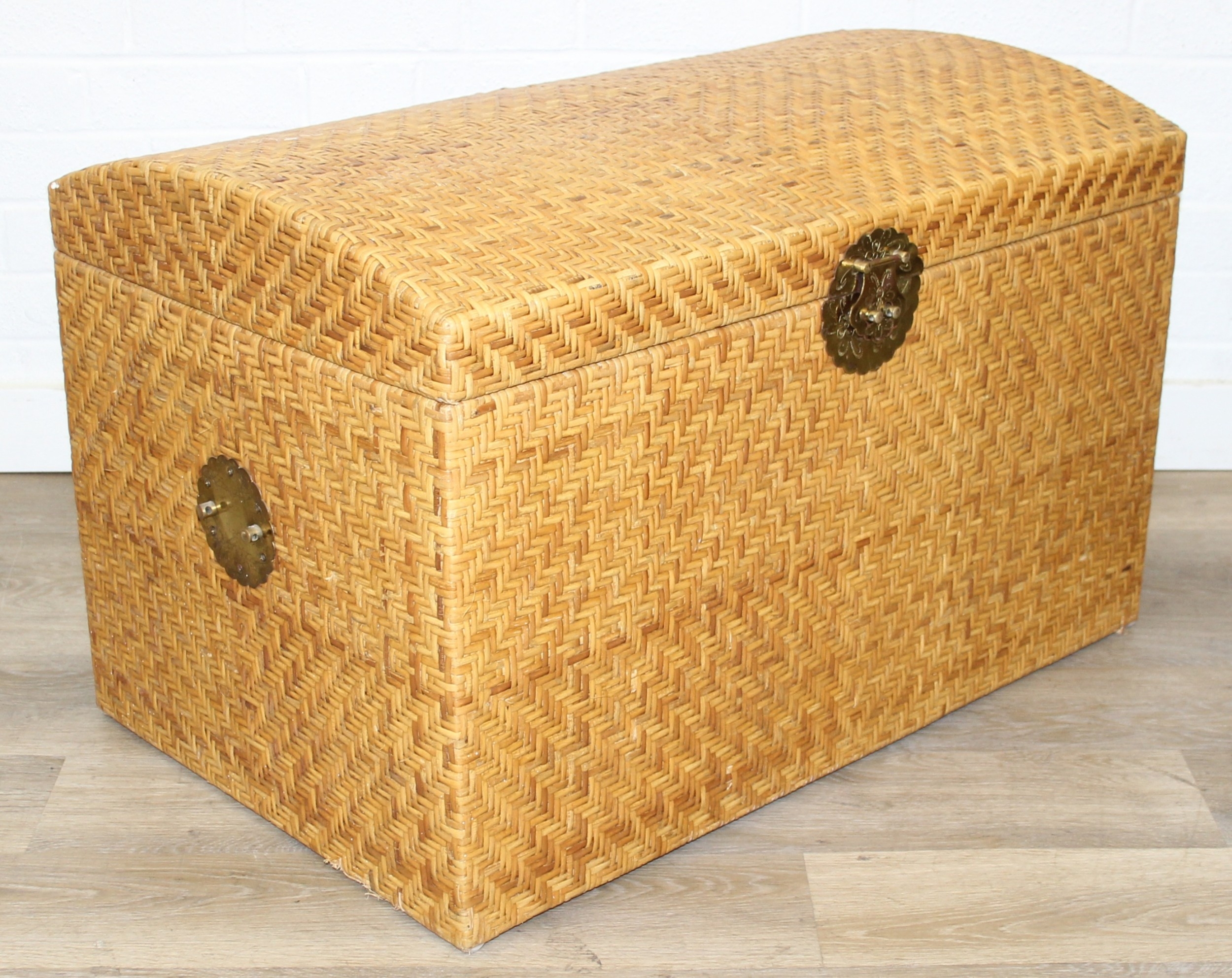 A vintage wicker trunk with brass clasp, possibly Chinese, 80cm x 50cm x 52cm