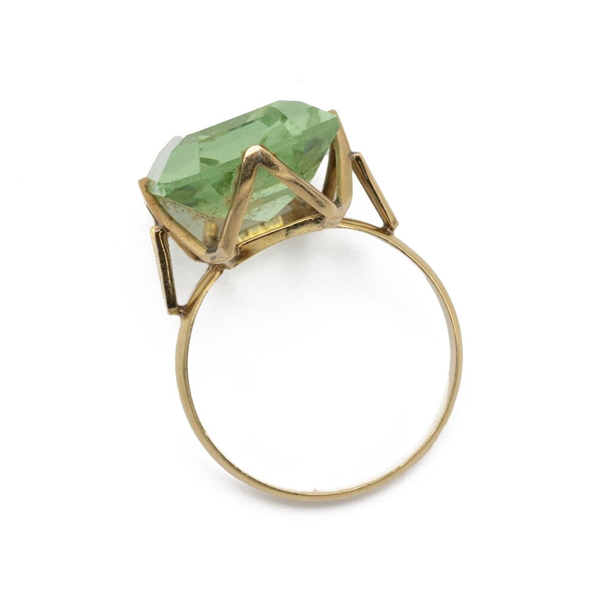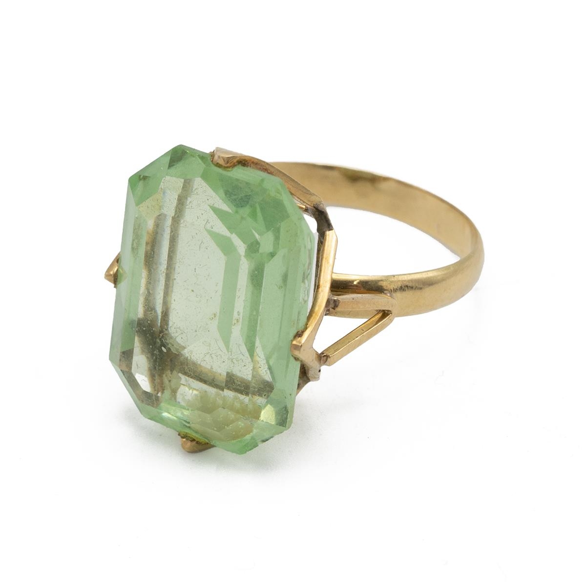 A gold and paste set ring, in a four claw setting, unmarked, tested 18ct gold, finger size O 1/2, 5.41 grams. (J)