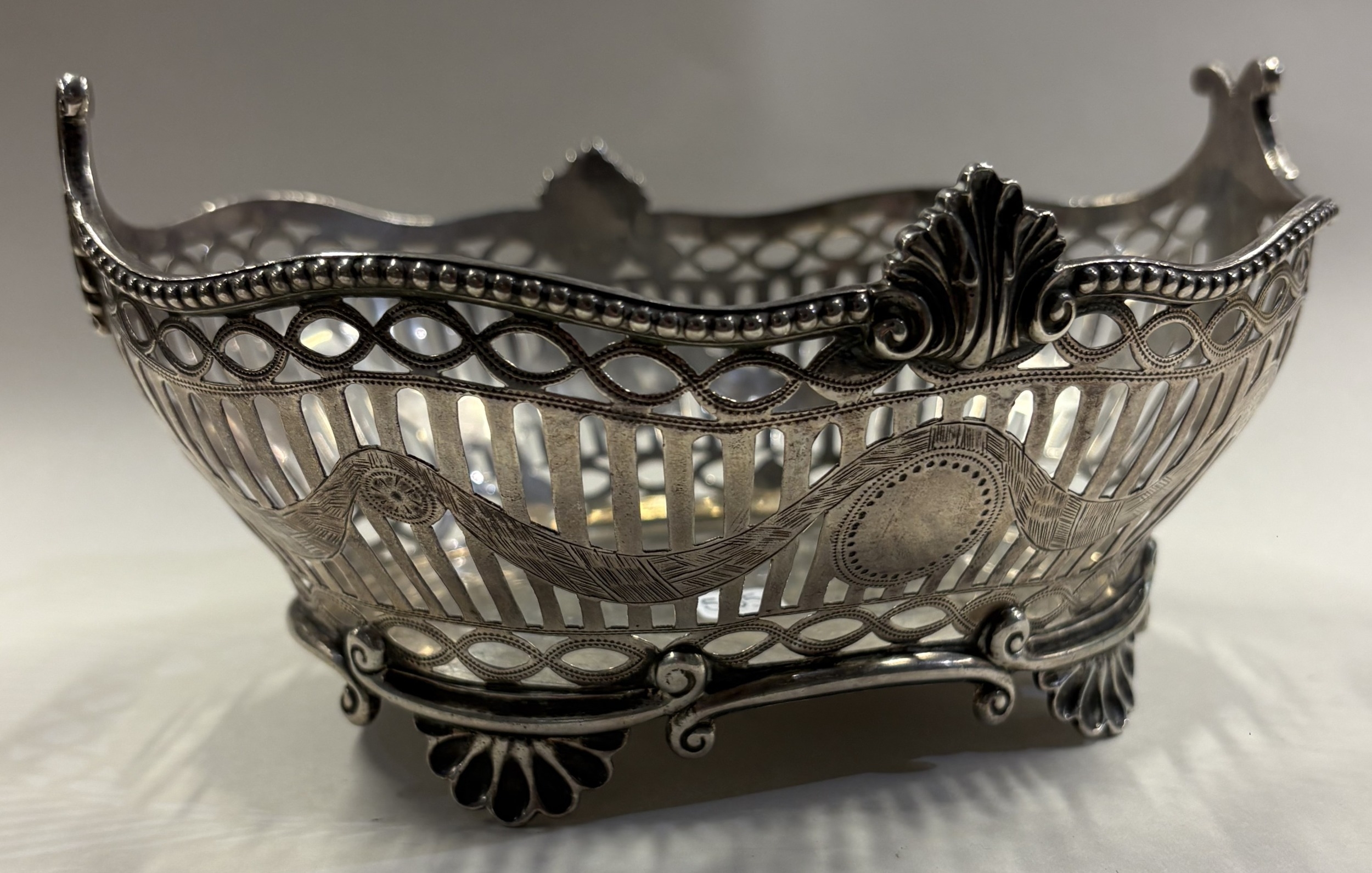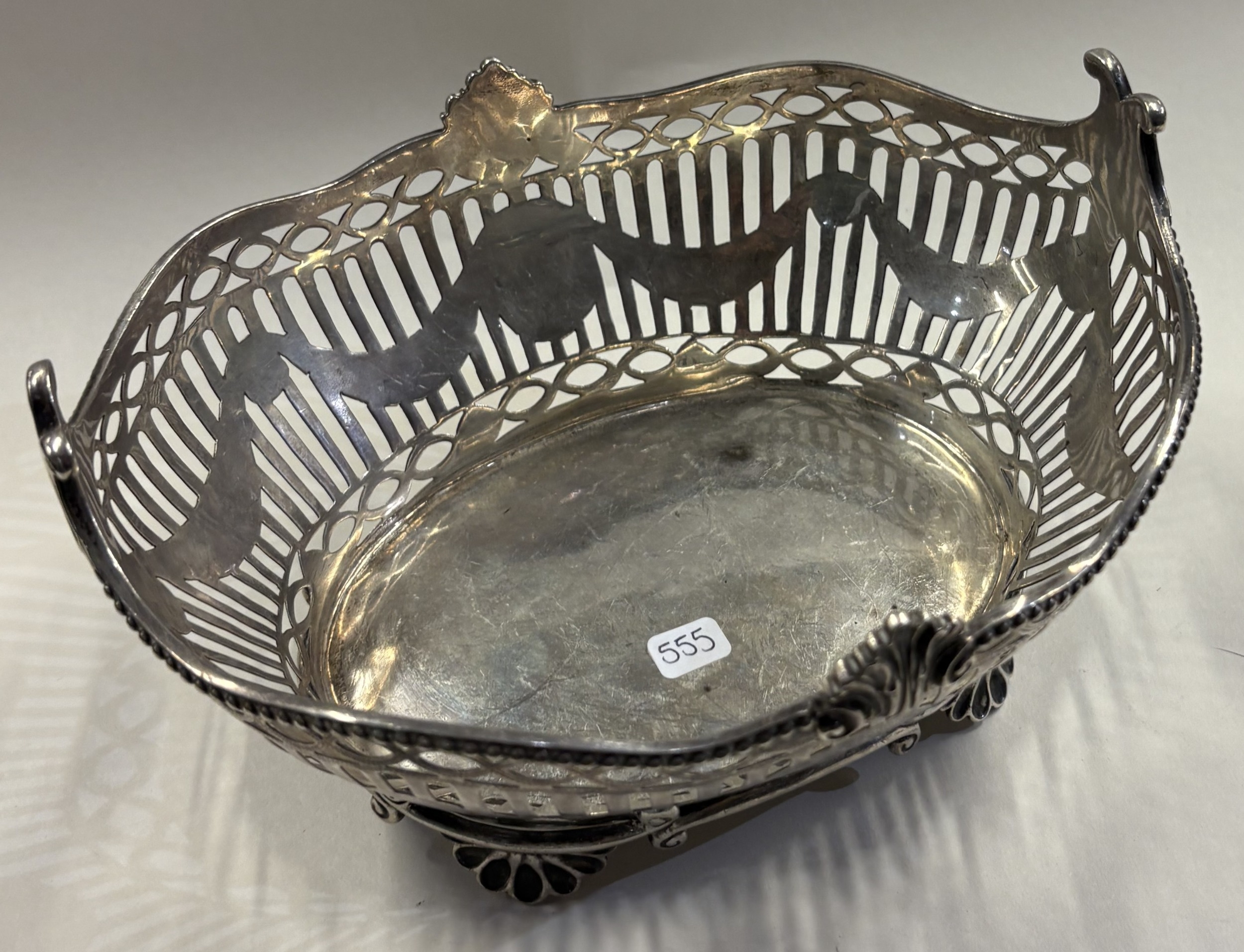 A pierced Victorian silver basket on feet. London 1900. Approx. 322 grams. Est. £500 - £800.