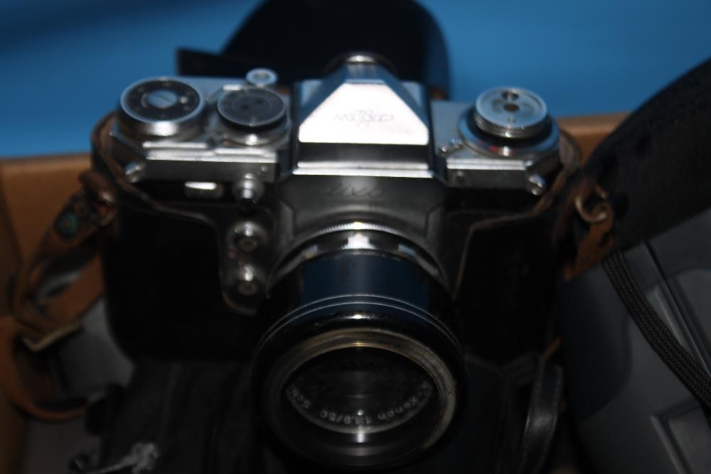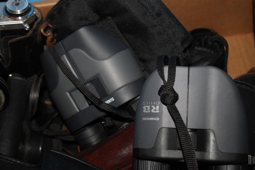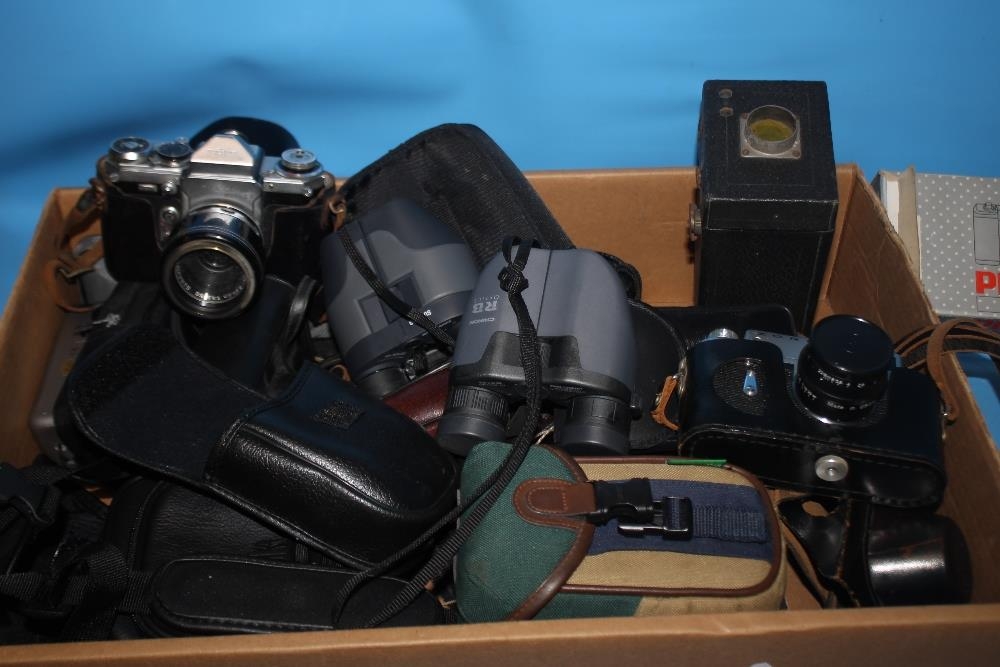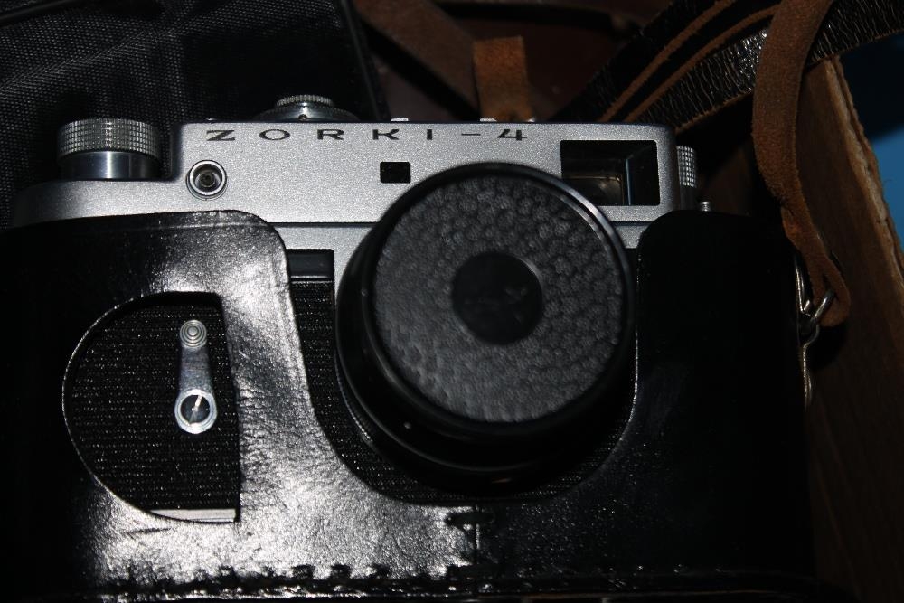 A LARGE QUANTITY OF CAMERAS TO INCLUDE A ZORKI - 4, A KODAK CAMERA, BINOCULARS ETC.