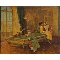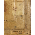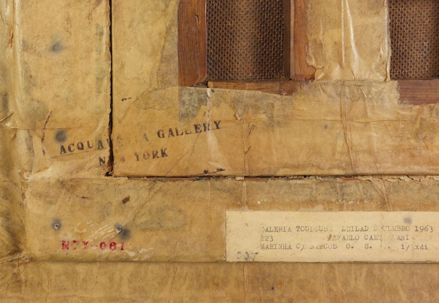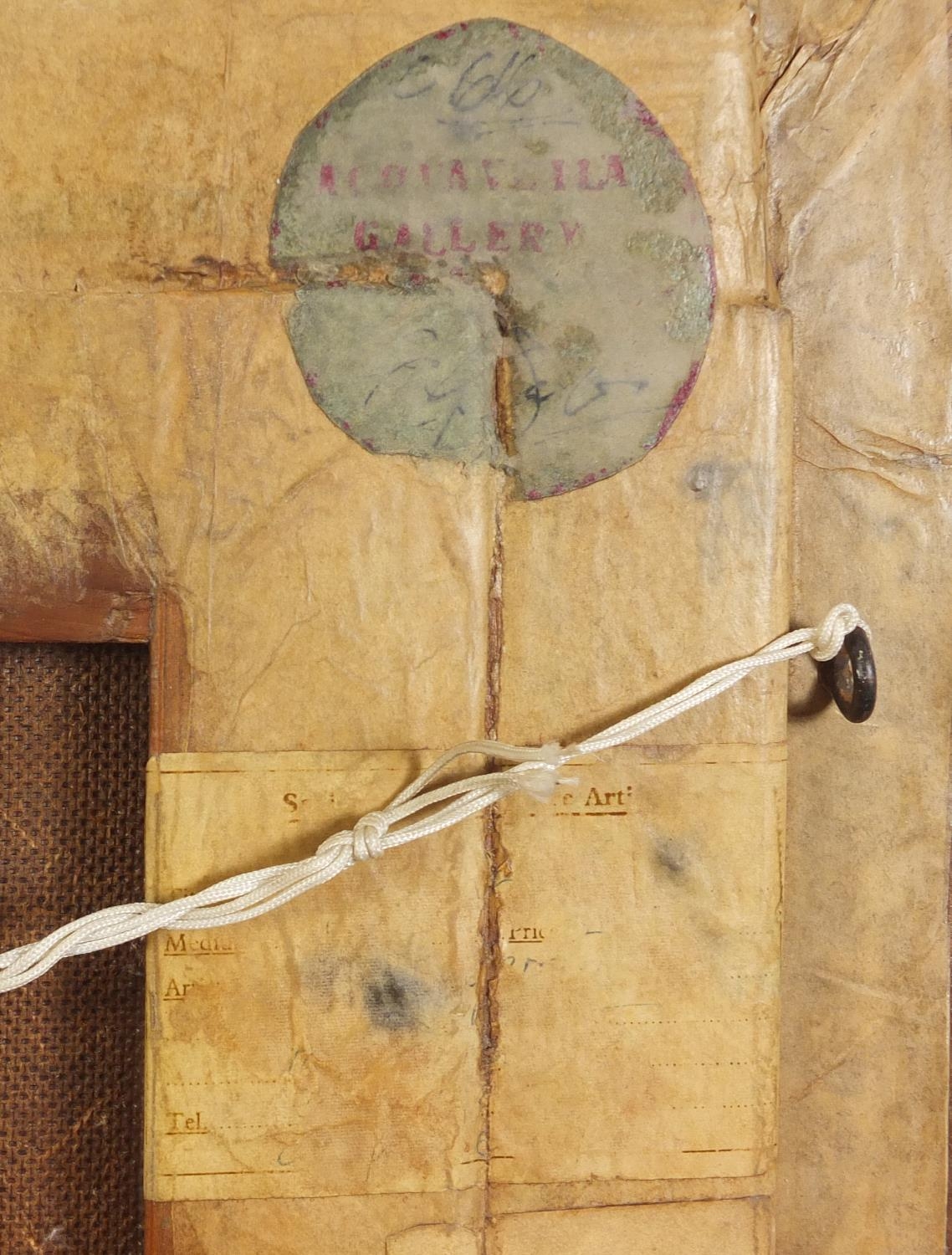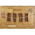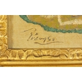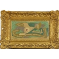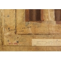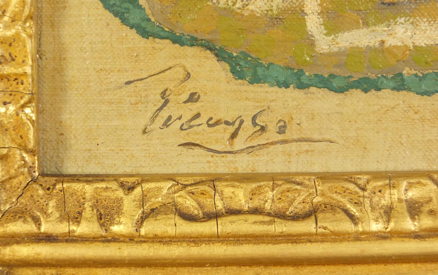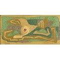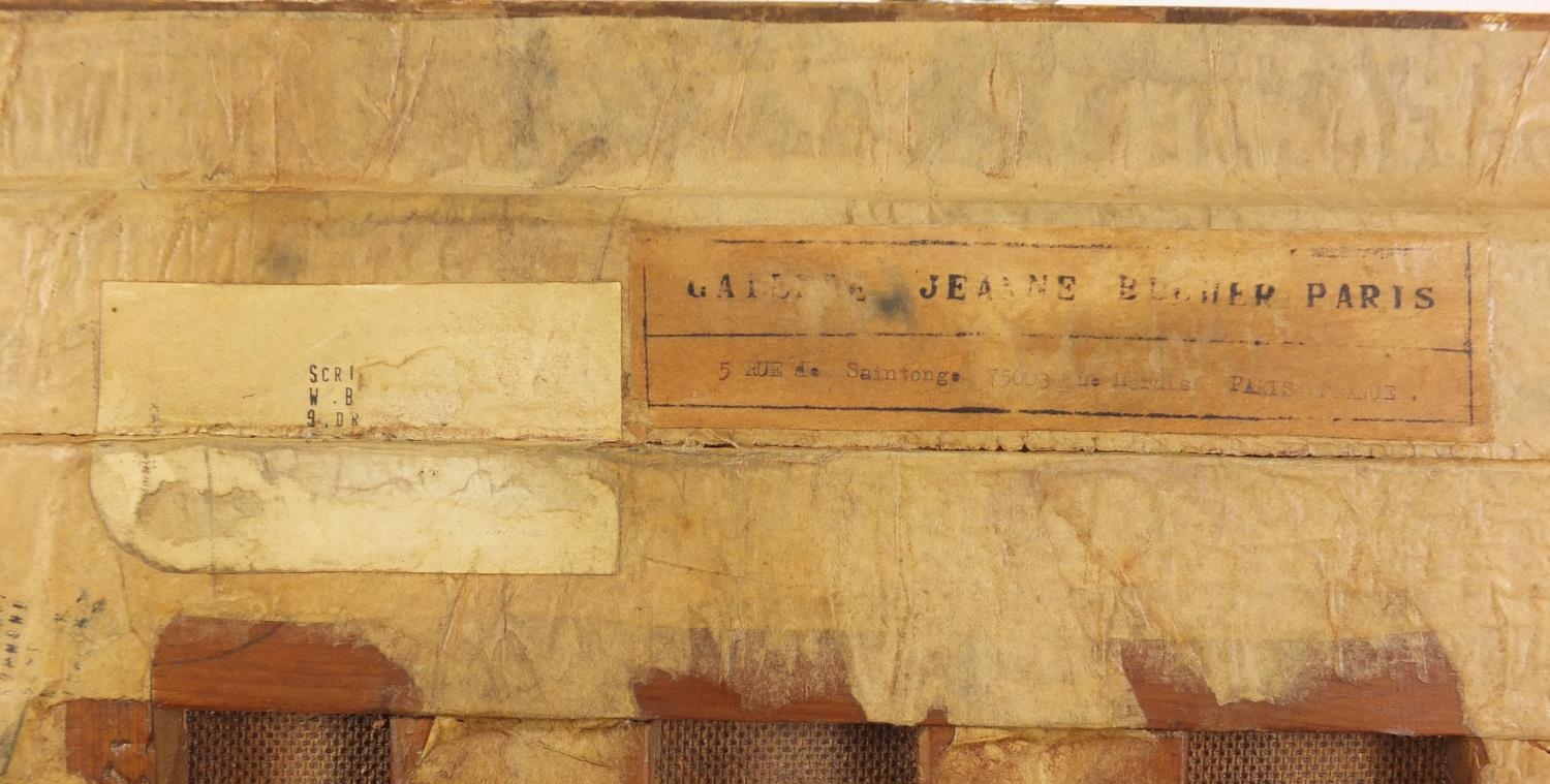 Abstract composition, oil on canvas laid on board, details verso, framed, 39.5cm x 20cm