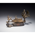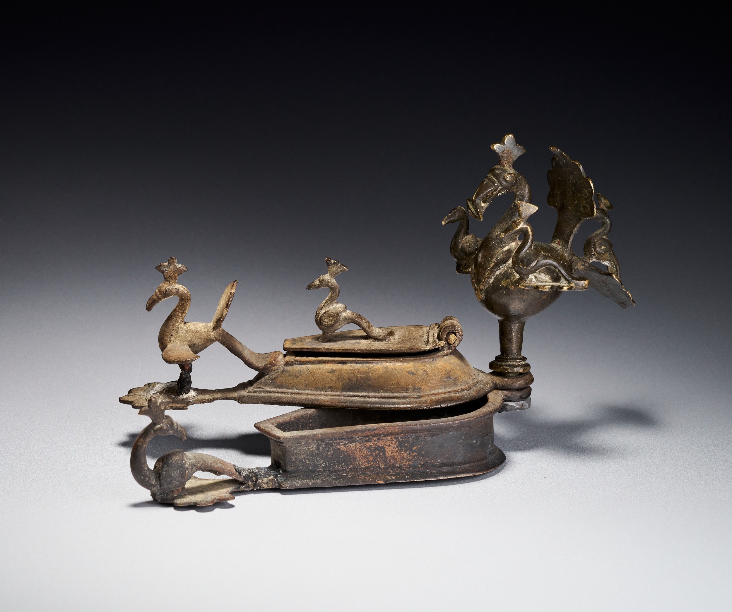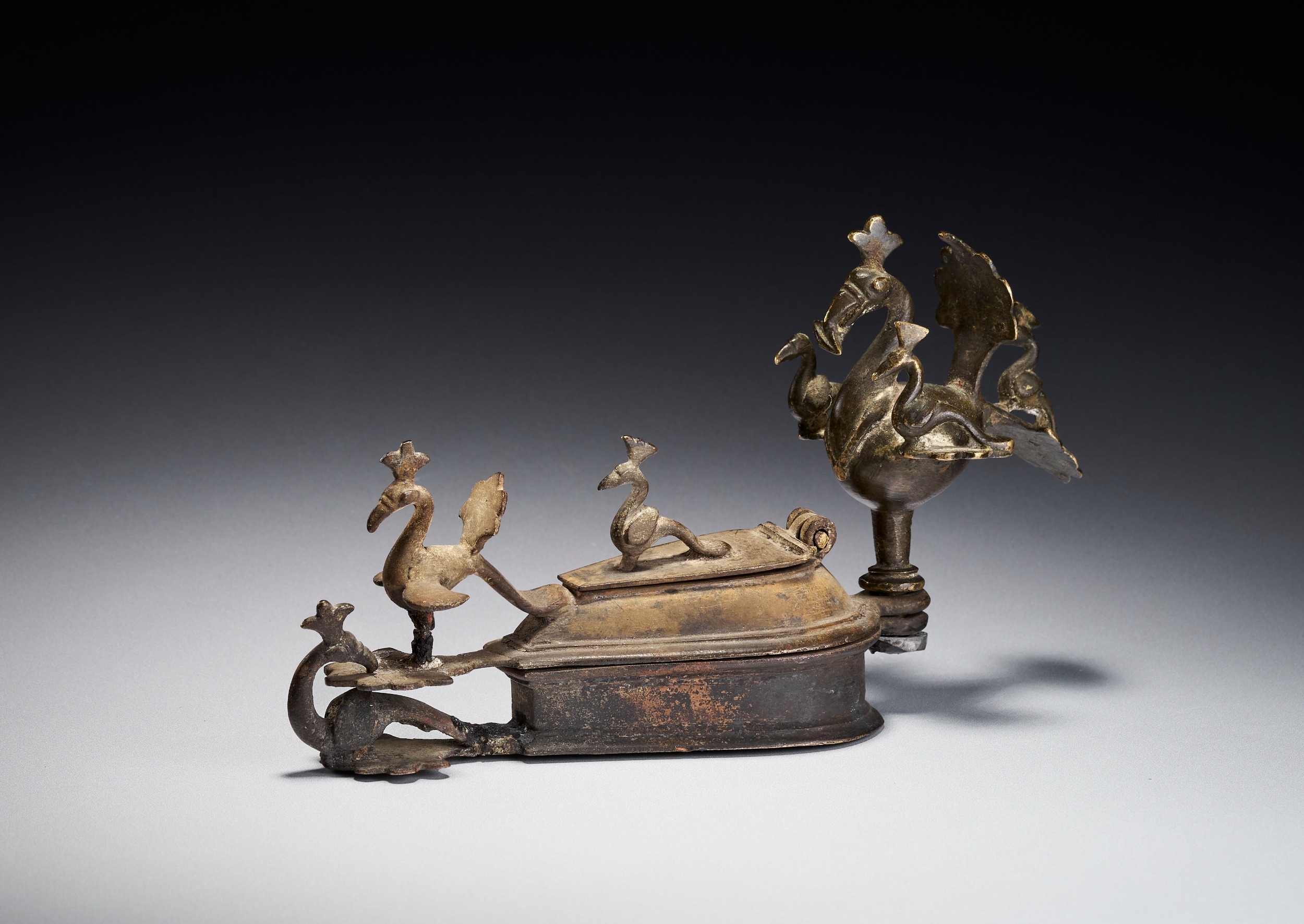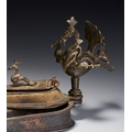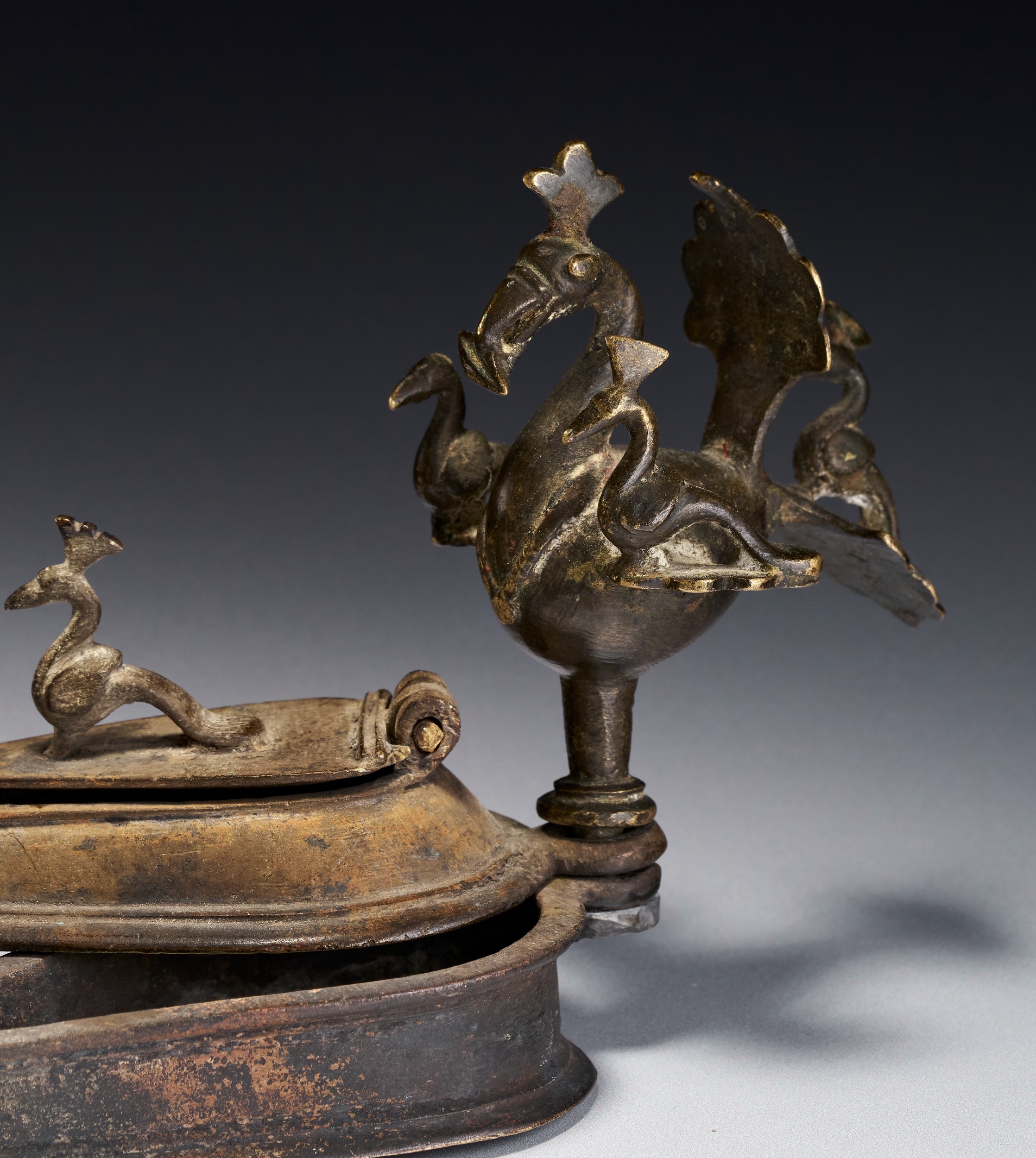 A BRONZE PEACOCK KUMKUM TIKKA SPIRITUAL BOX, DECCAN INDIA, 17TH CENTURY