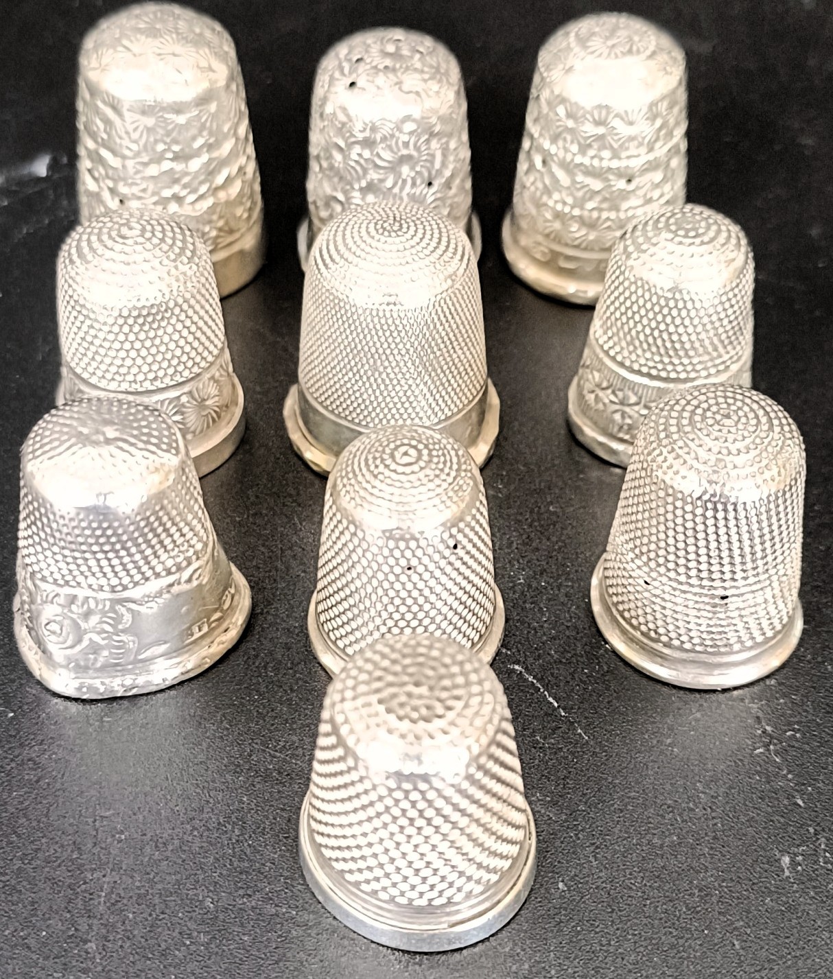 Ten silver and silver coloured metal thimbles, 1.3 ozt all in
