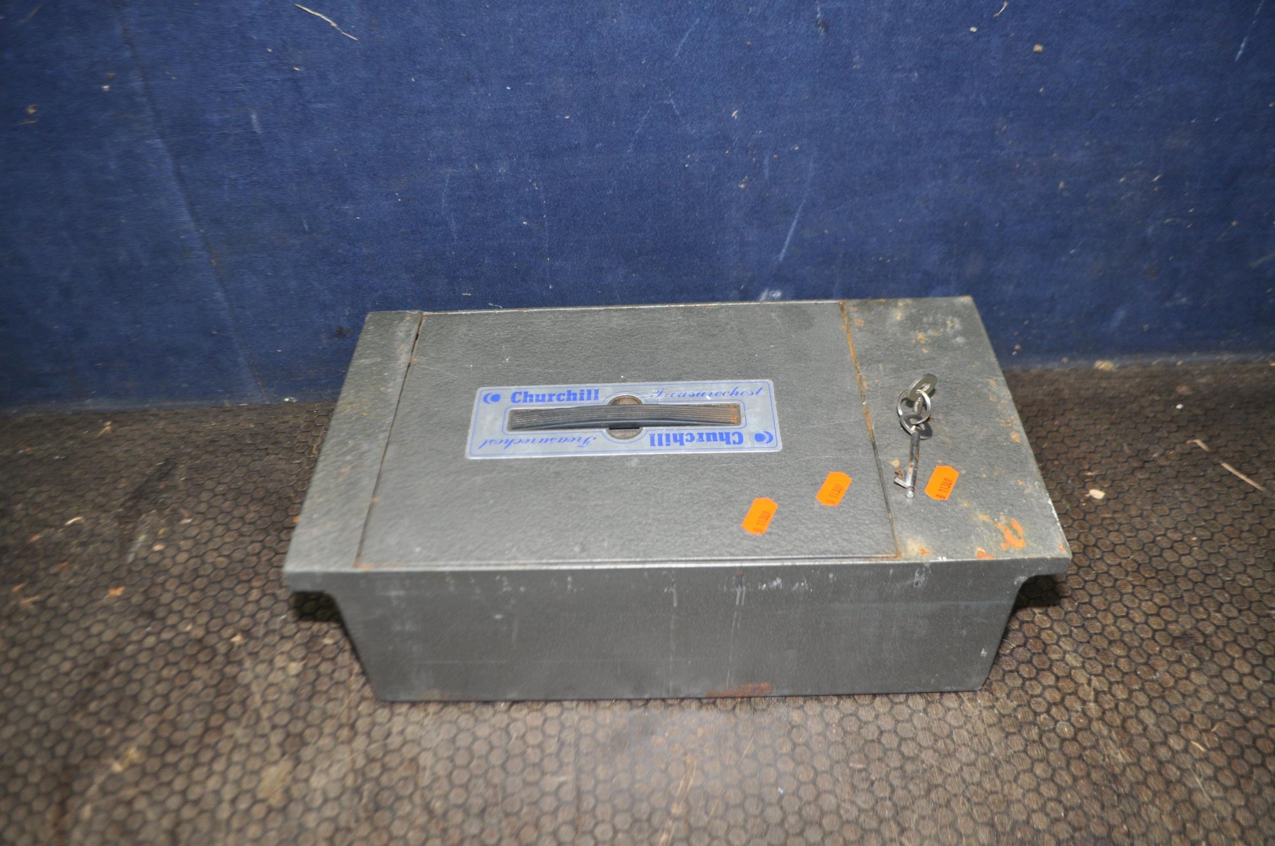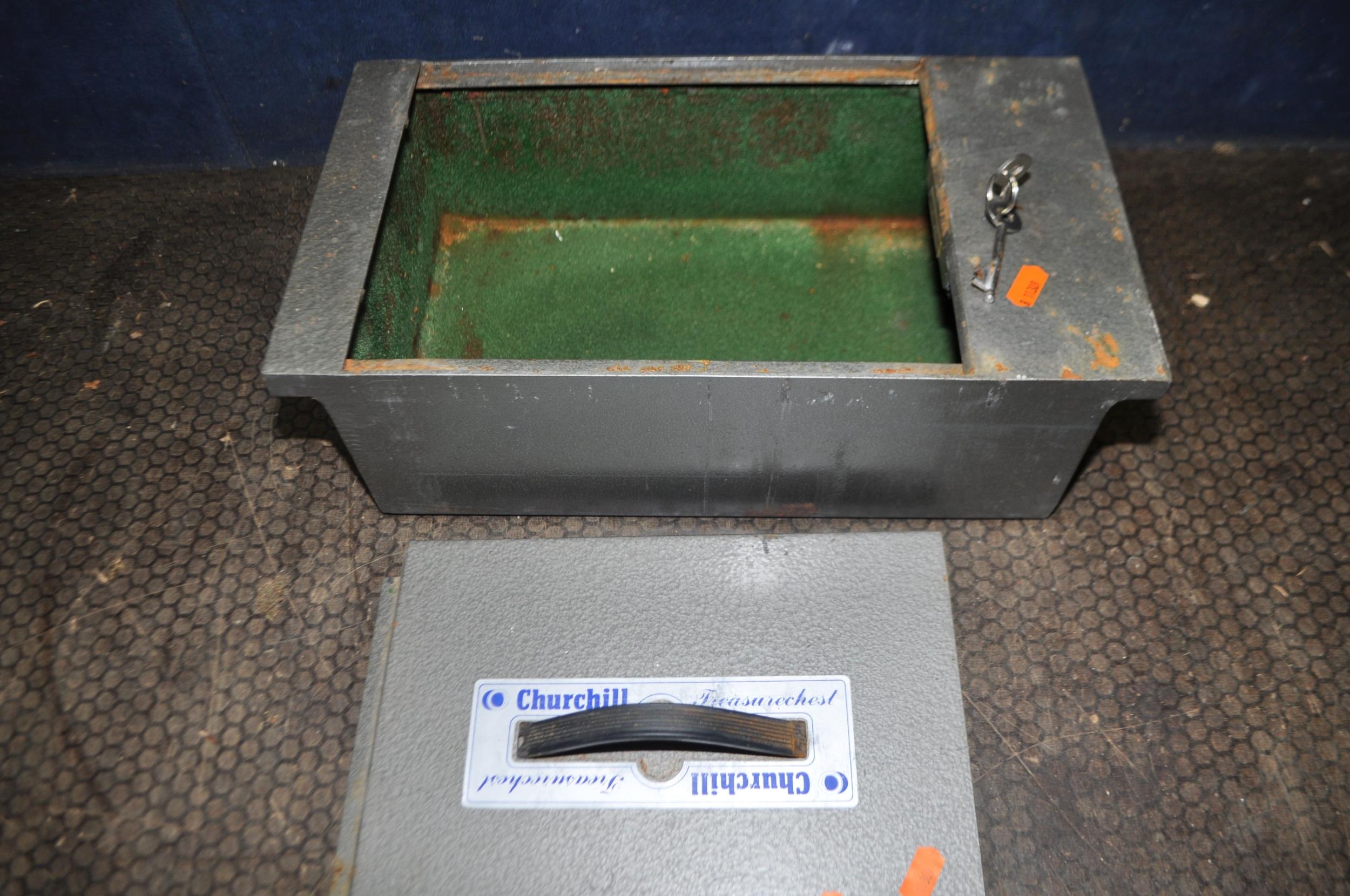 A CHURCHILL 'TREASURE CHEST' FLOOR SAFE with two keys, outer width 39cm, fitting width 36cm, depth 22cm, height 13cm