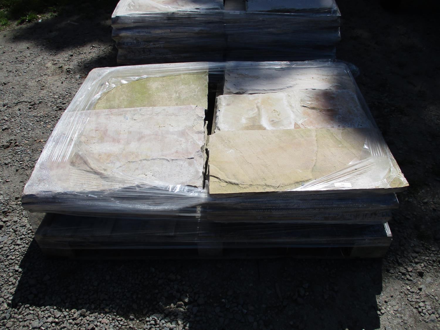 A pallet of sand stone paving