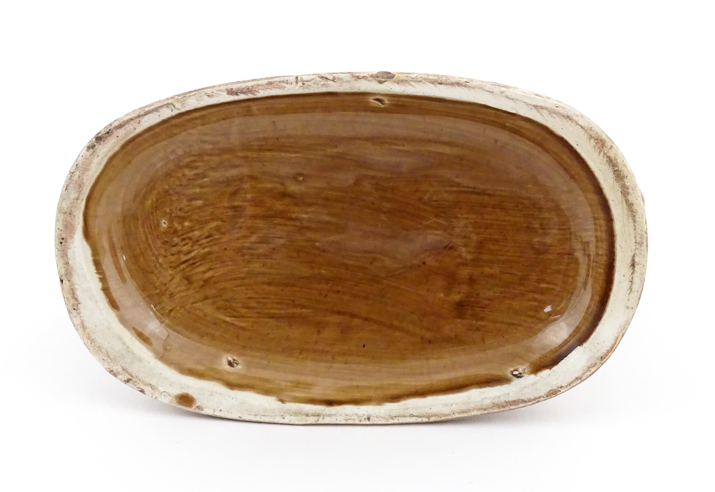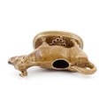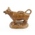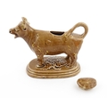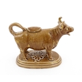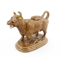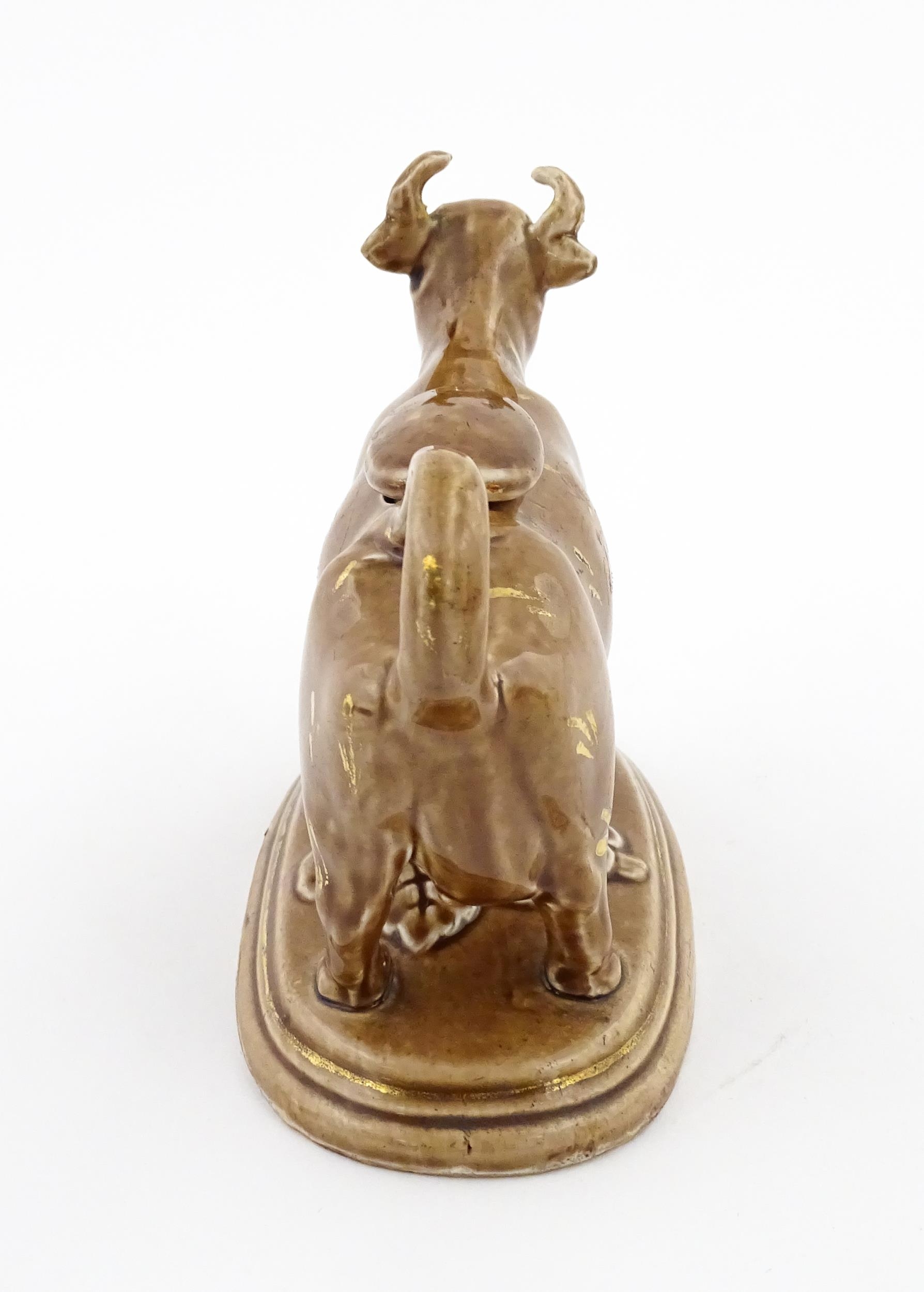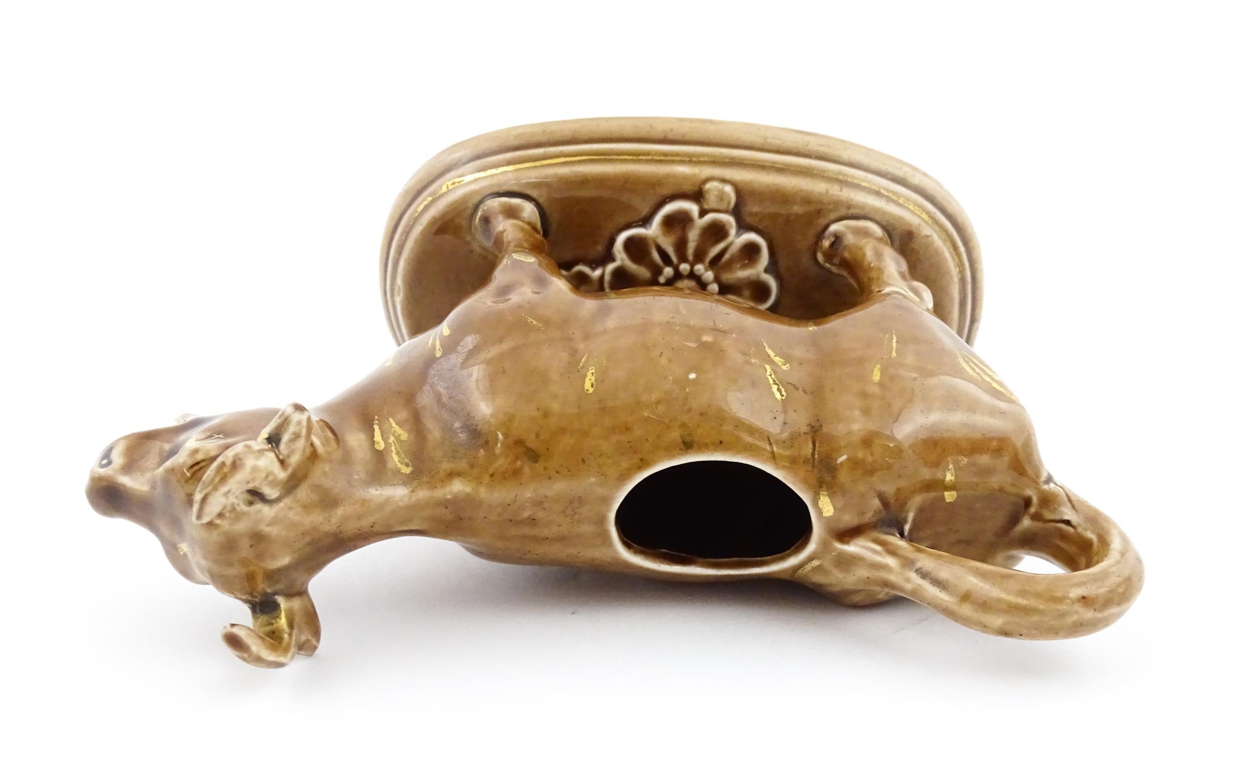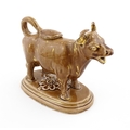 A Staffordshire cow creamer with gilt highlights, the oval base with flower detail. Approx. 6 1/4" long