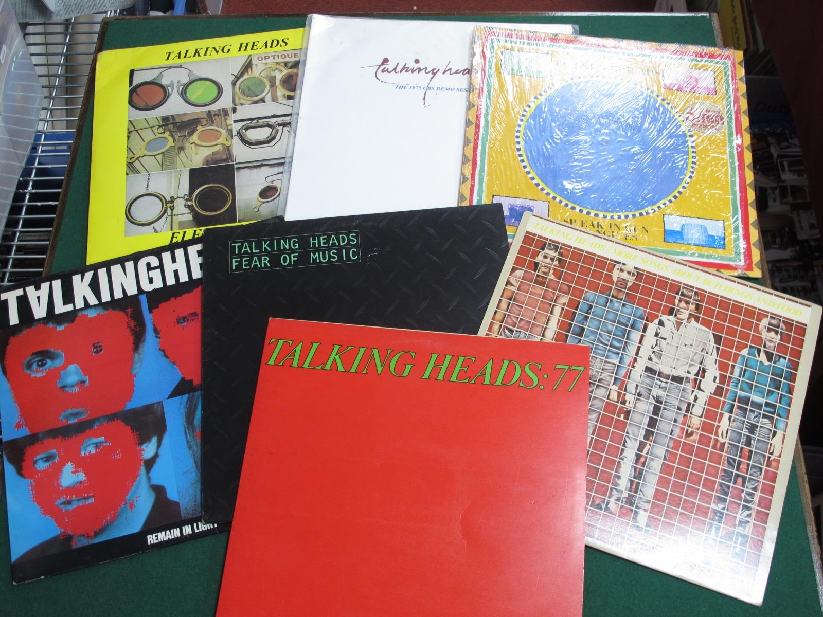 Talking Heads L.P's, seven albums, to include Talking Heads 77, (Sire 9103-328, 1977) original UK pressing, VG+, More Songs About Buildings And Food (Sire K56531, 1978) original UK pressing, VG, Fear Of Music (Sire SRK 6076, 1979) VG+, Remain In Light, G+, Speaking In Tongues, VG+, The 1975 CBS Demo Session (bootleg), Electrically (Beacon Island 2S712, 1979) live bootleg.