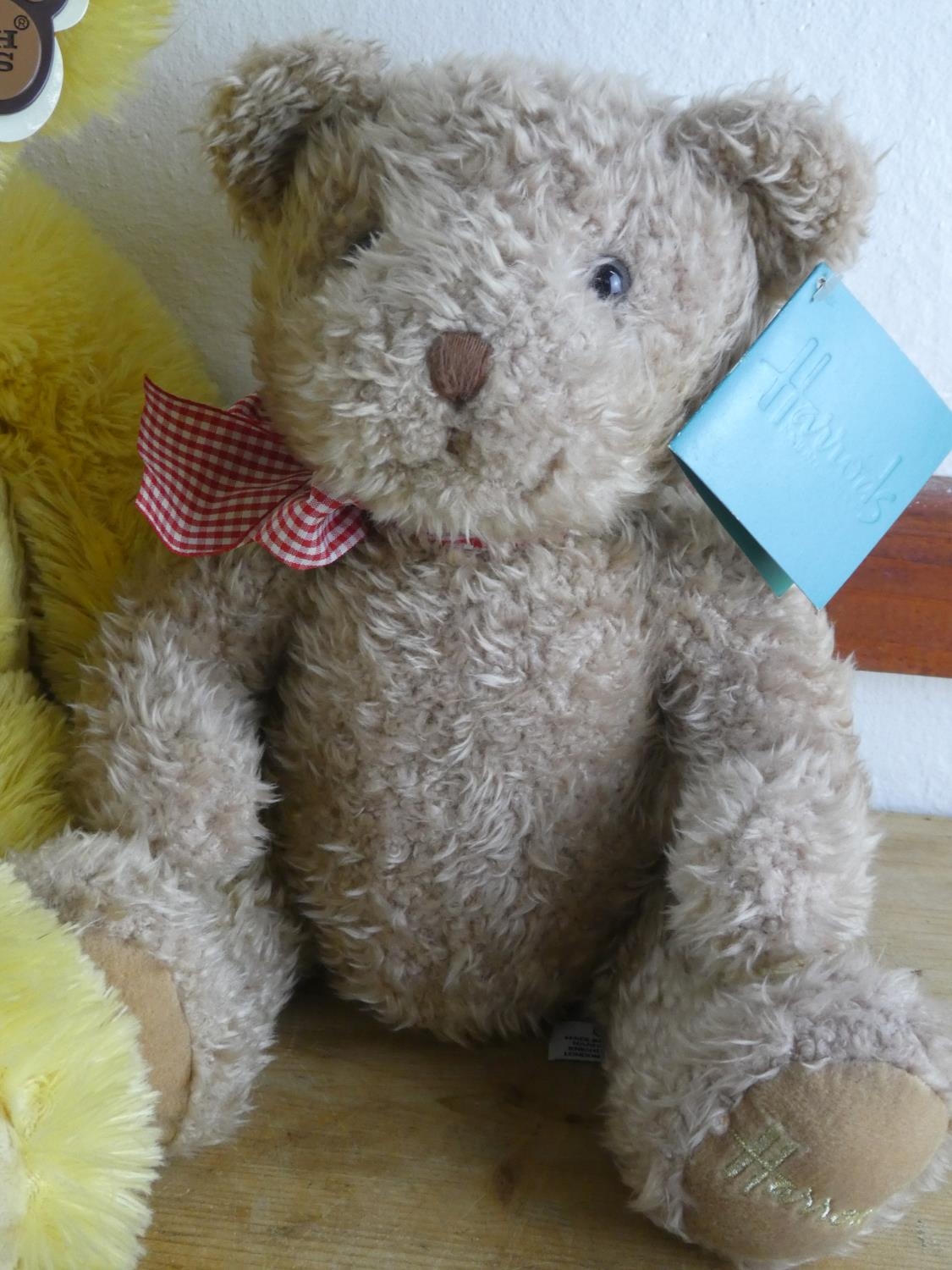 A Harrods collectors teddy and another.