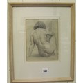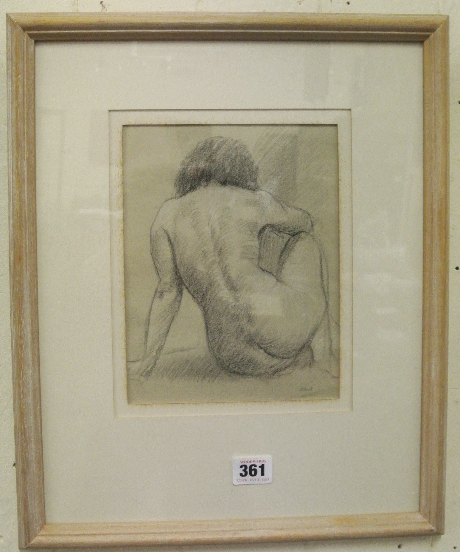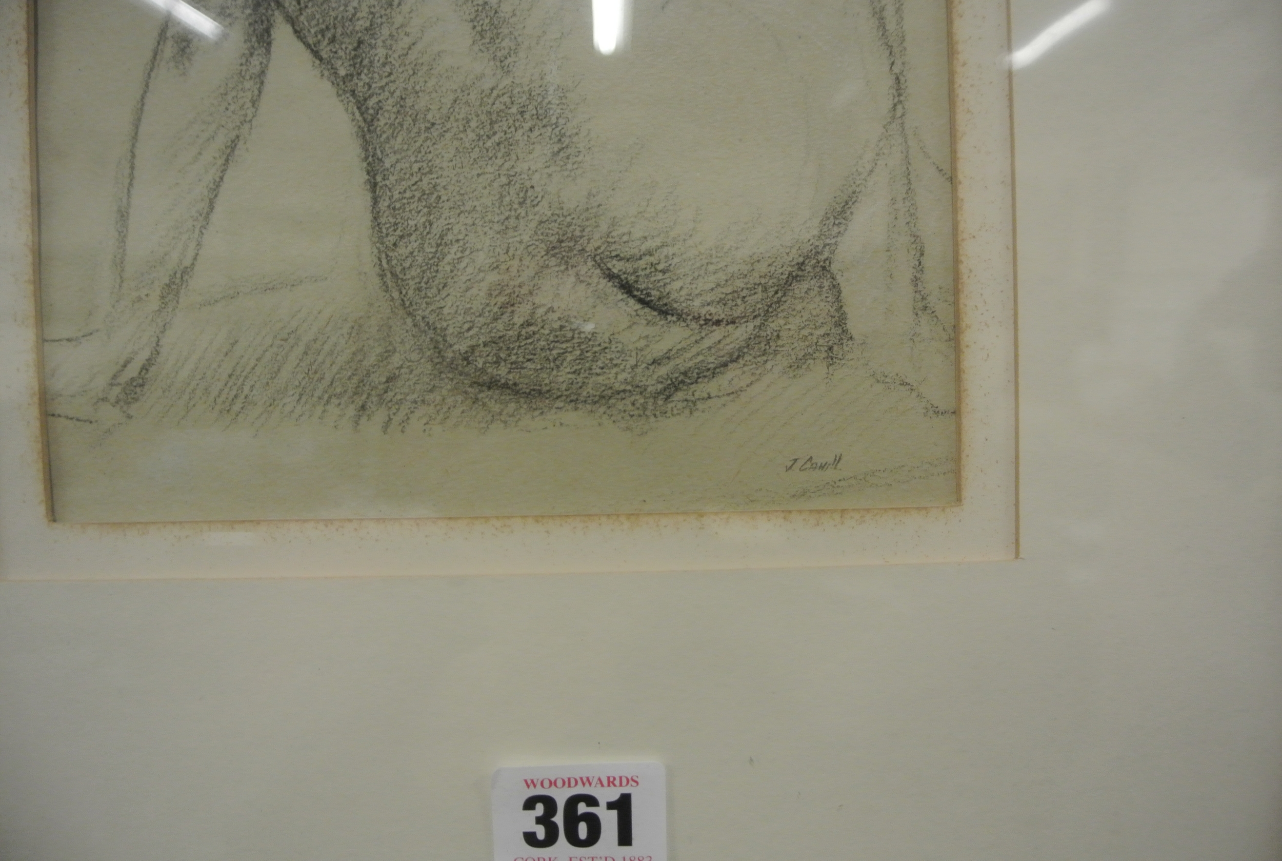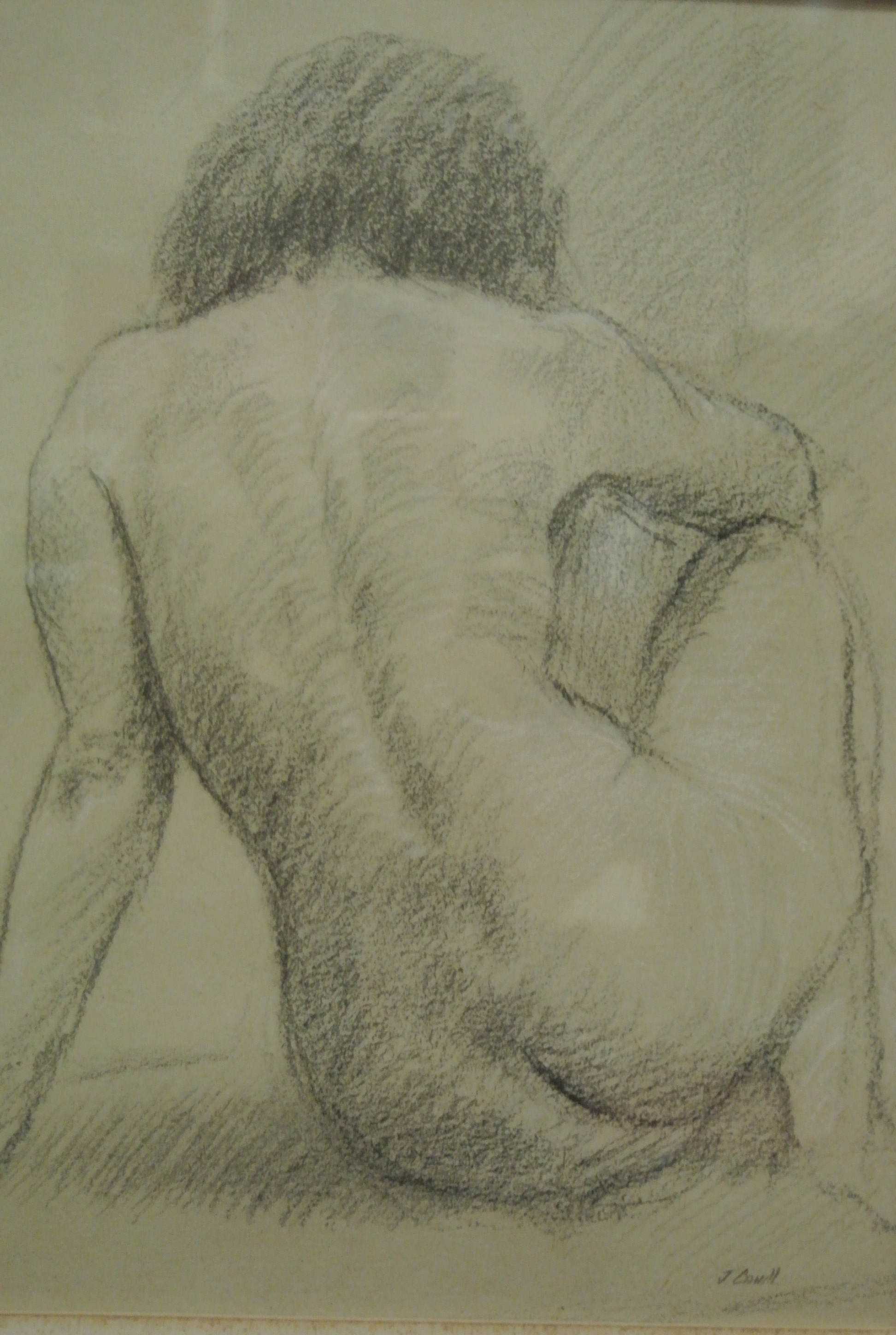 J Cahill 'Nude' conte on paper, 22x18cm, signed