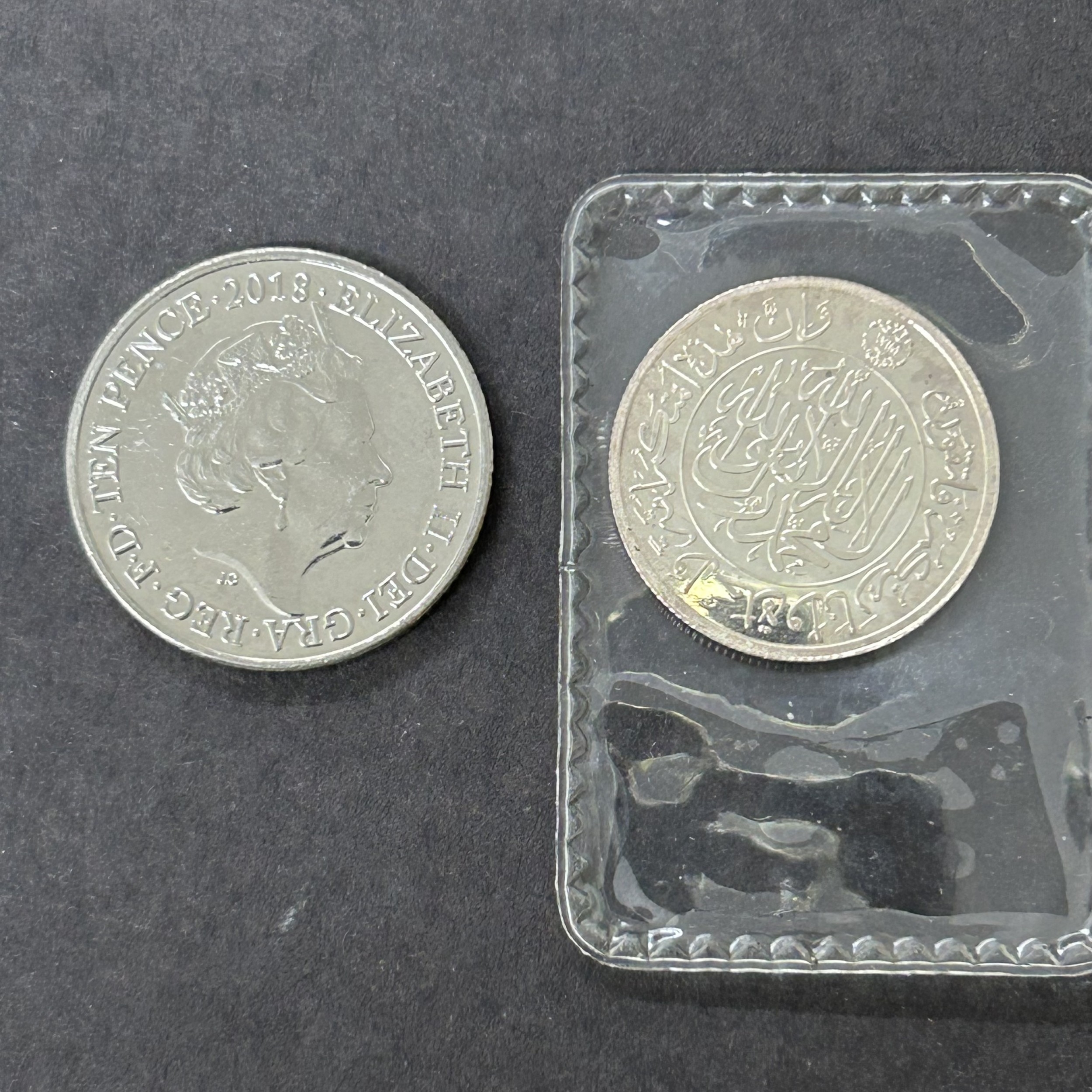 A 'Government of Kelantan' one dirham 999.0 silver fantasy coin, weight approx. 3.5g together with a 2018 QEII Jubilee ten pence coin
