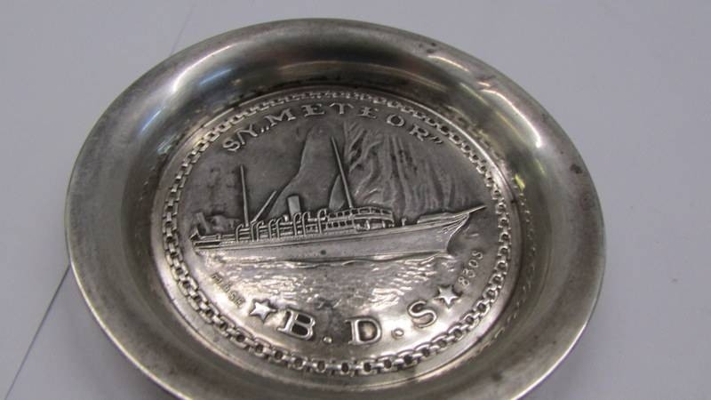 A silver S/Y Meteor pin tray.