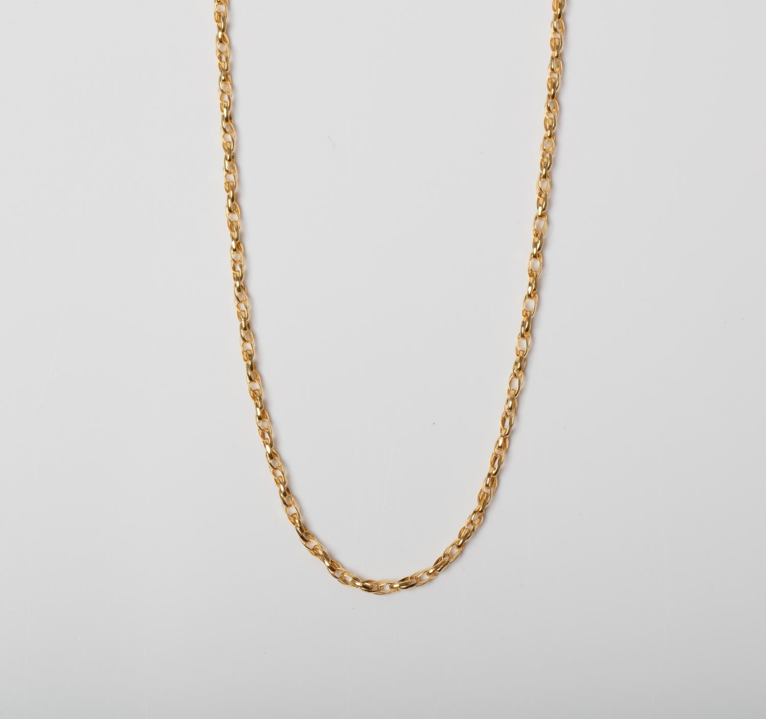 A 14CT GOLD FANCY LINK CHAIN A 45cm long Double Oval diamond cut chain crafted in 14ct yellow gold weighing 3.91 grams.