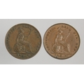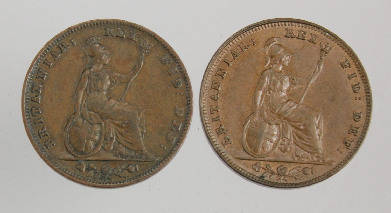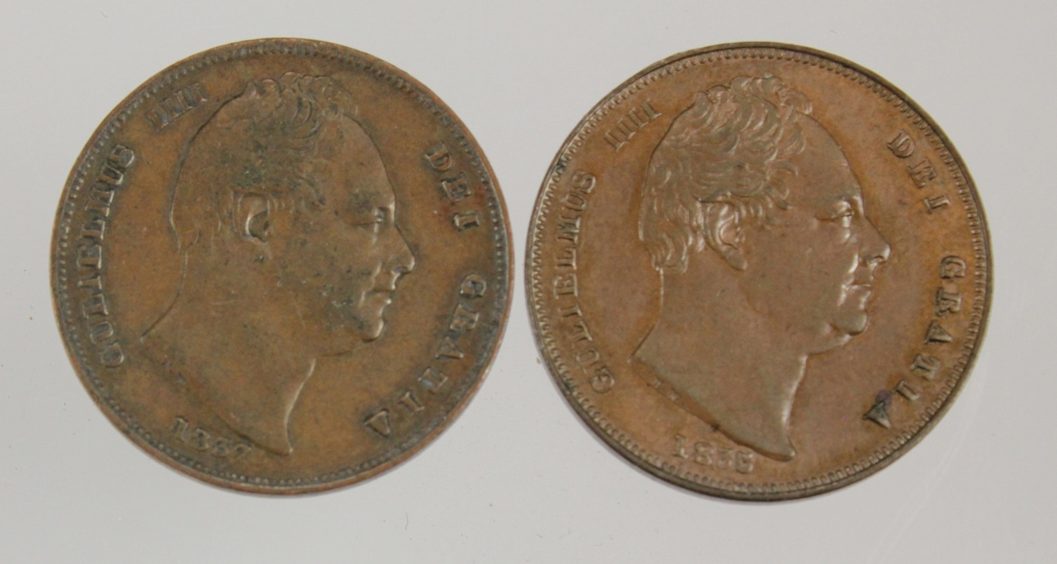 Farthings (2): 1835 up/up EF, and 1837 VF.