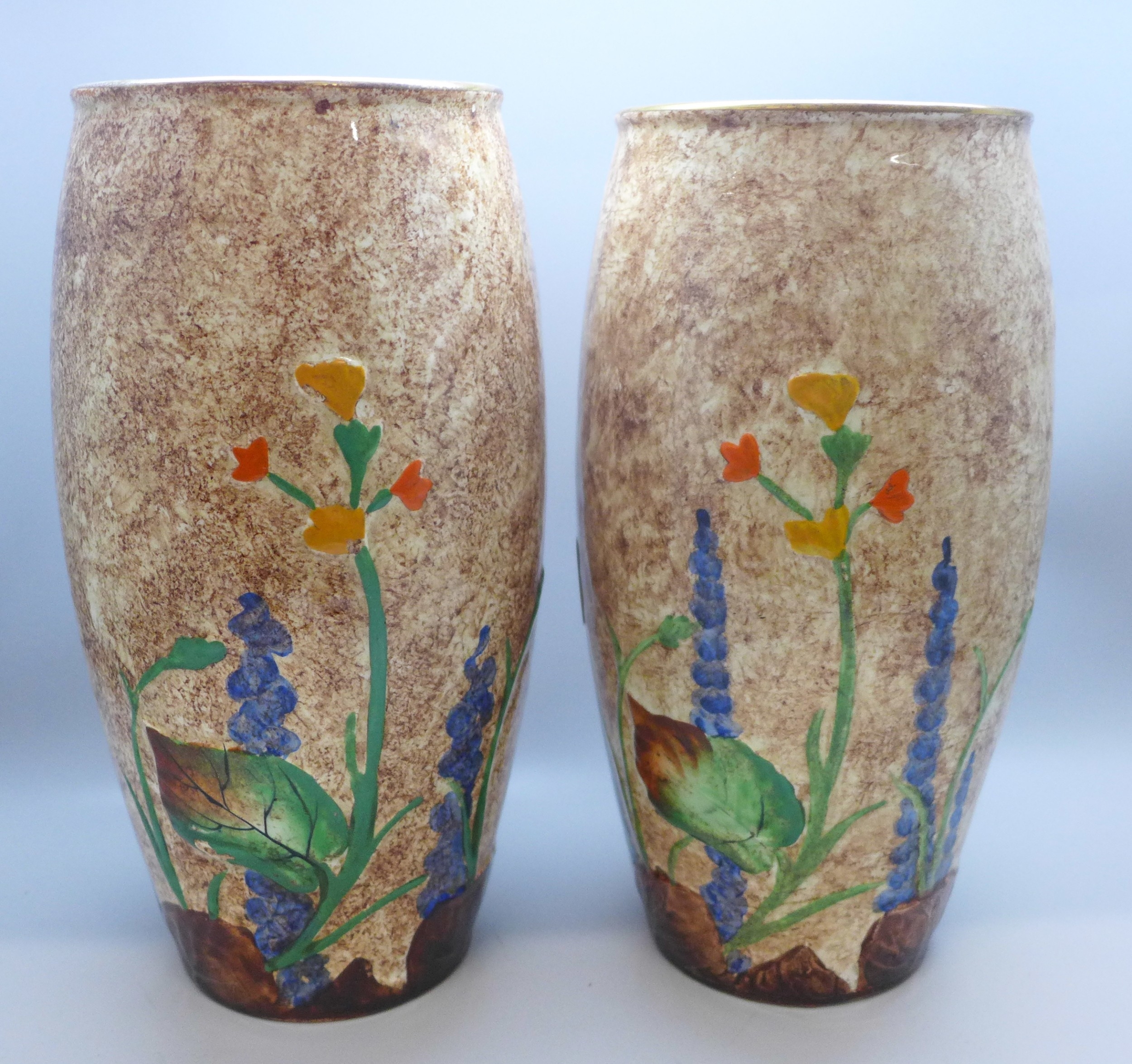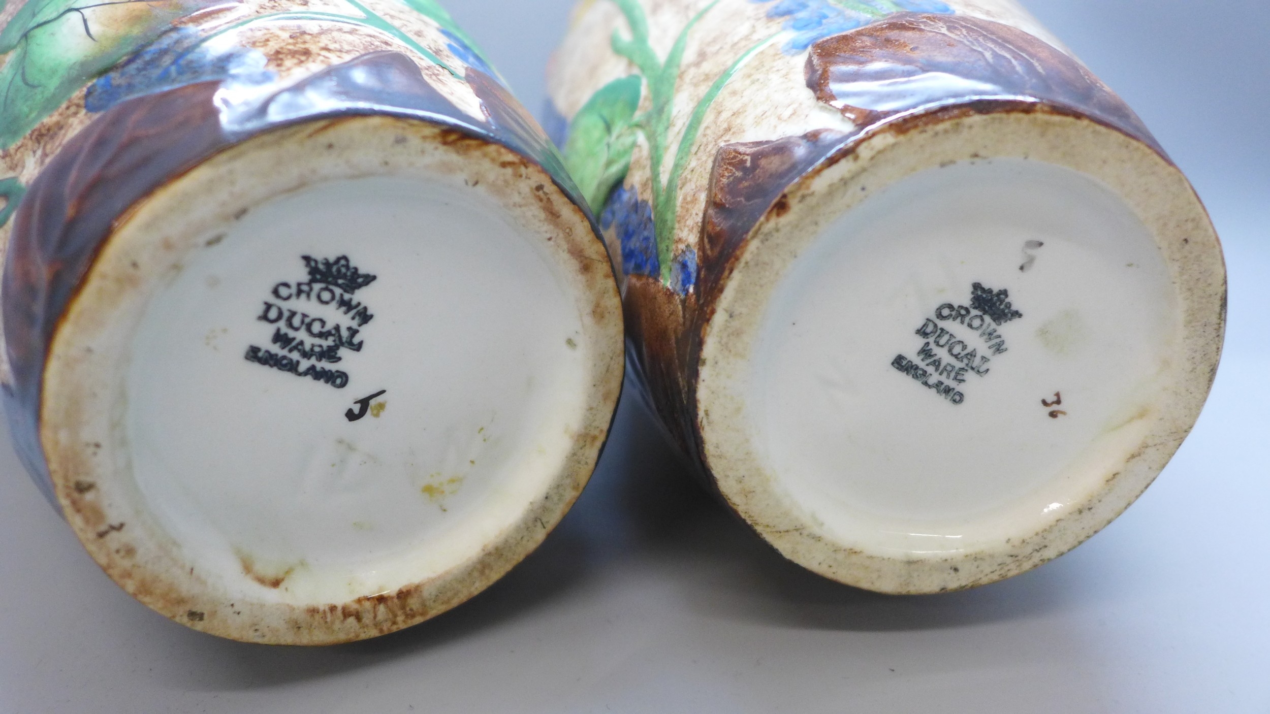 A pair of Art Deco Crown Ducal vases, 20cm h