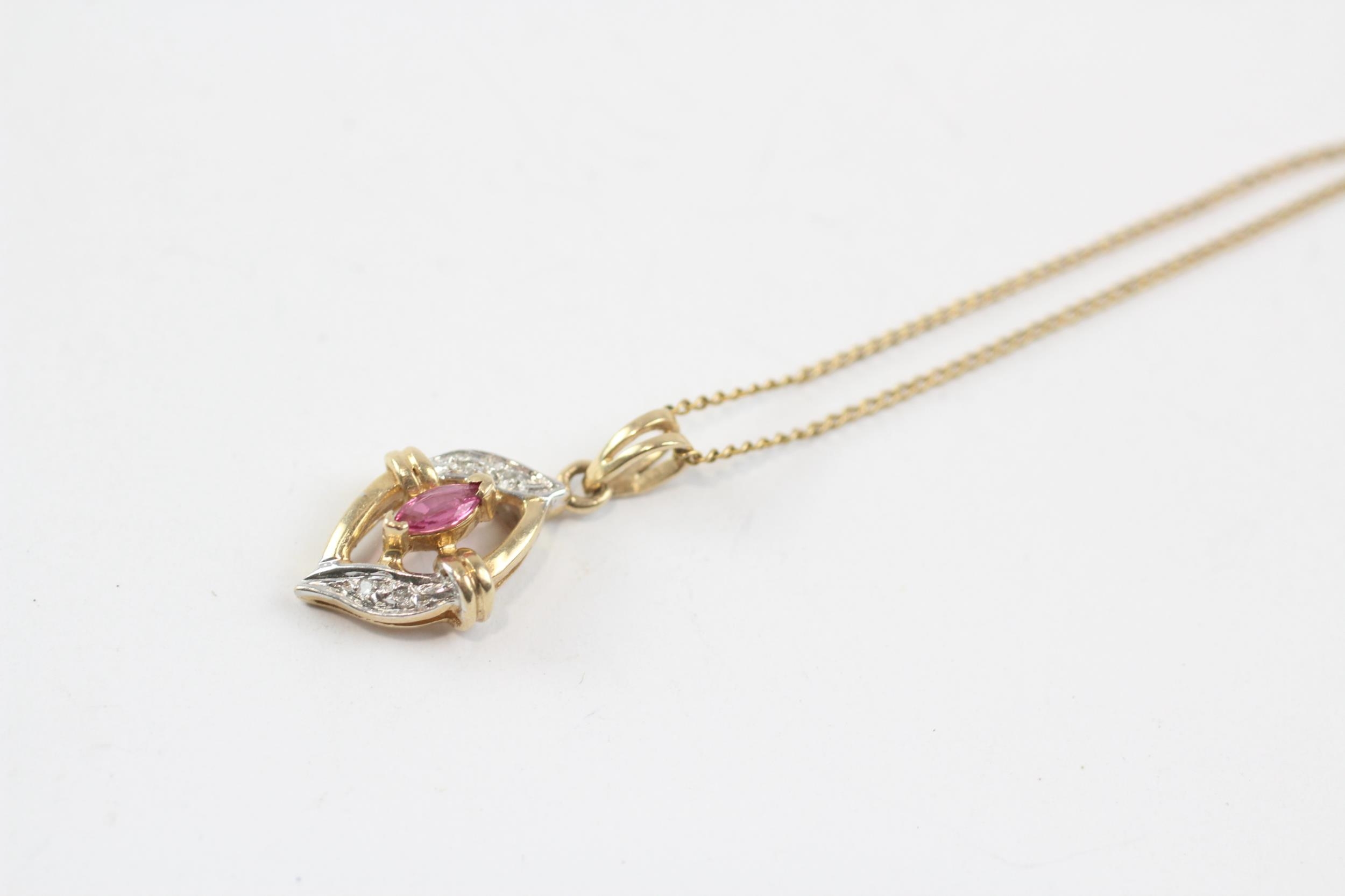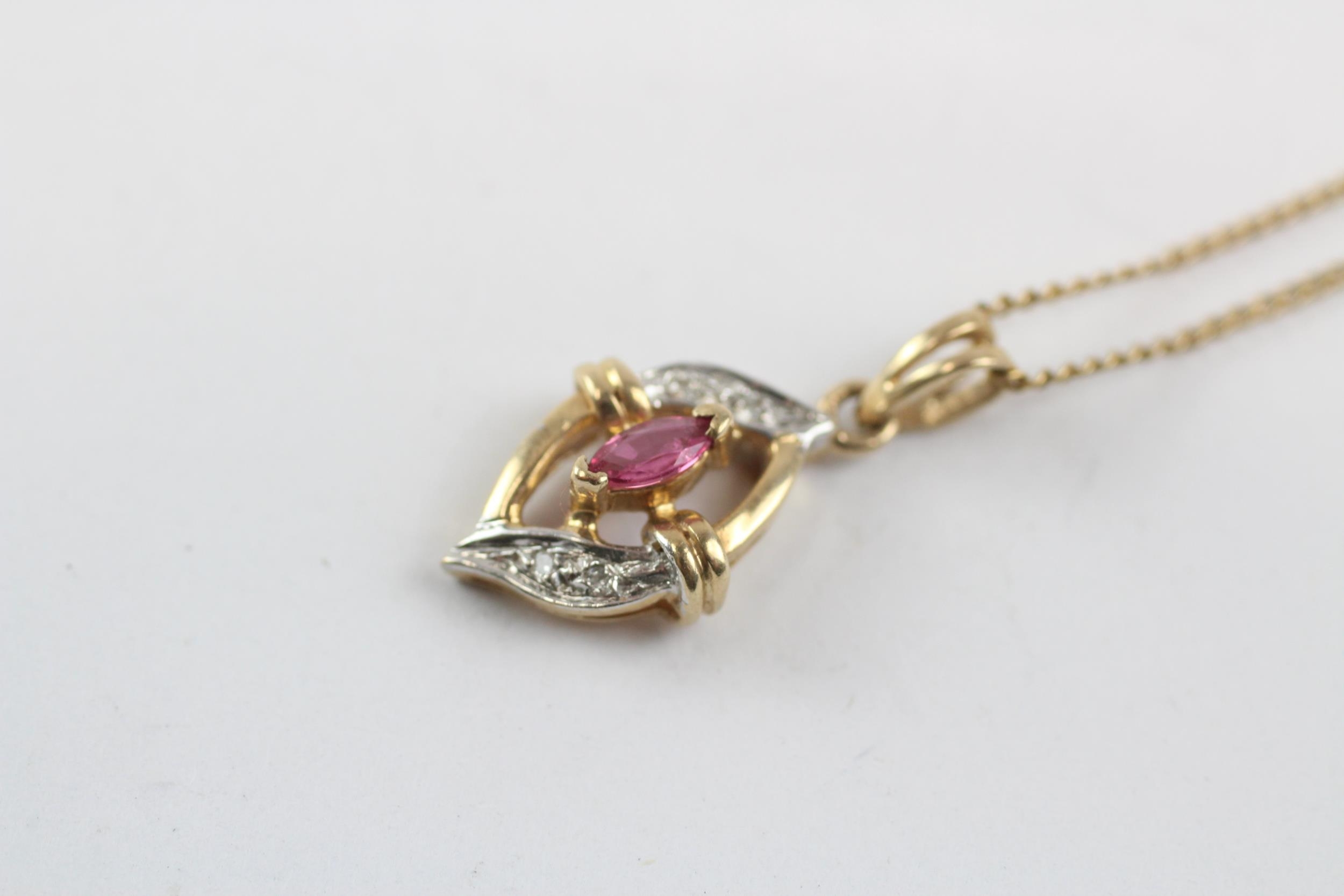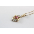 9ct Gold Diamond & Ruby Pendant Necklace (2.1g)