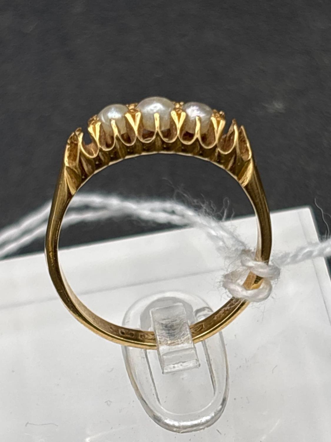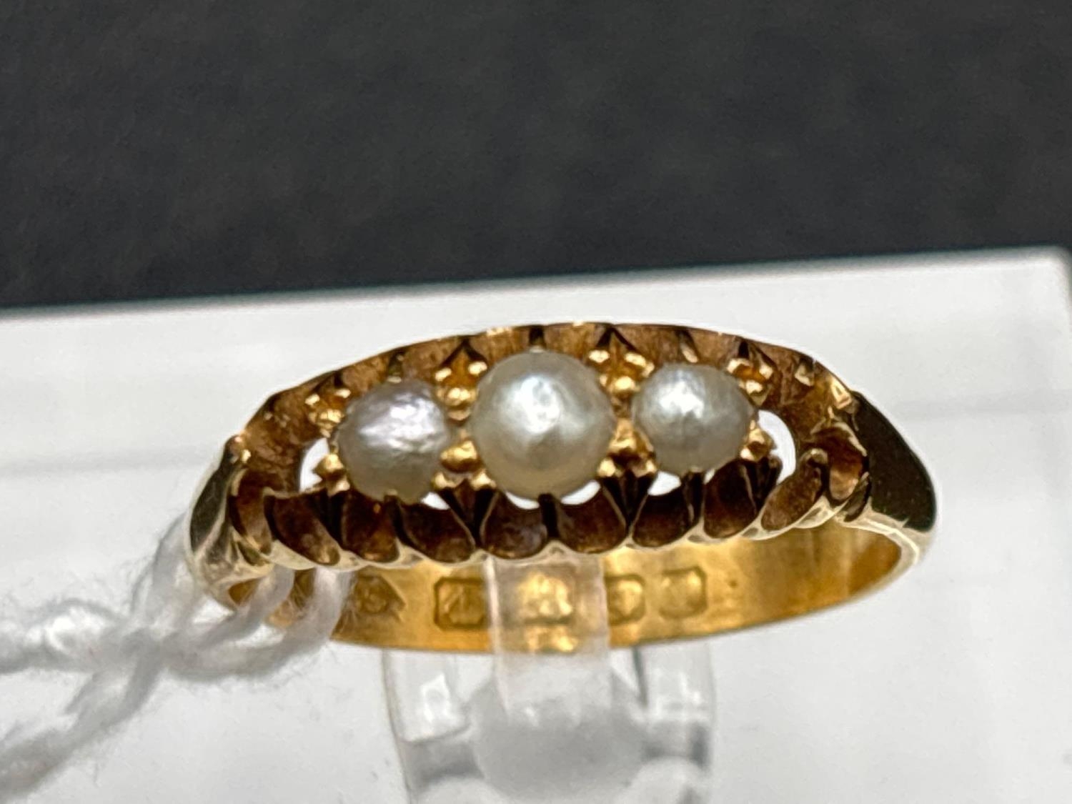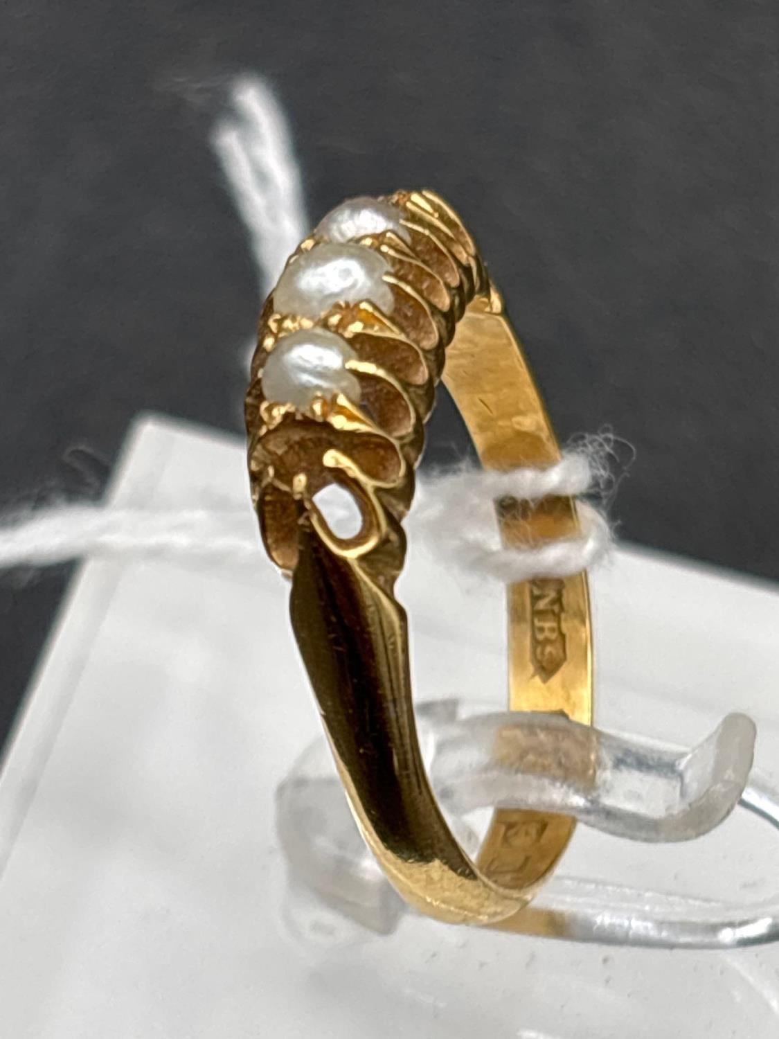 A Victorian pearl ring 2 stones missing 18ct size R 4.2g