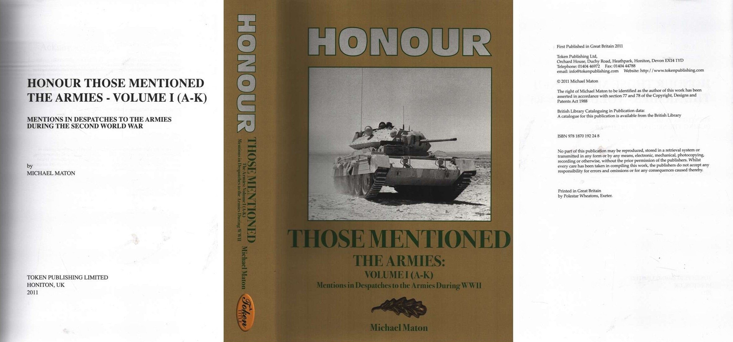Honour Those Mentioned The Armies: Volume I (A-K) Mentions in Despatches to the Armies During WWII. Author: Michael Maton. Publisher: Token. Published: 2011.