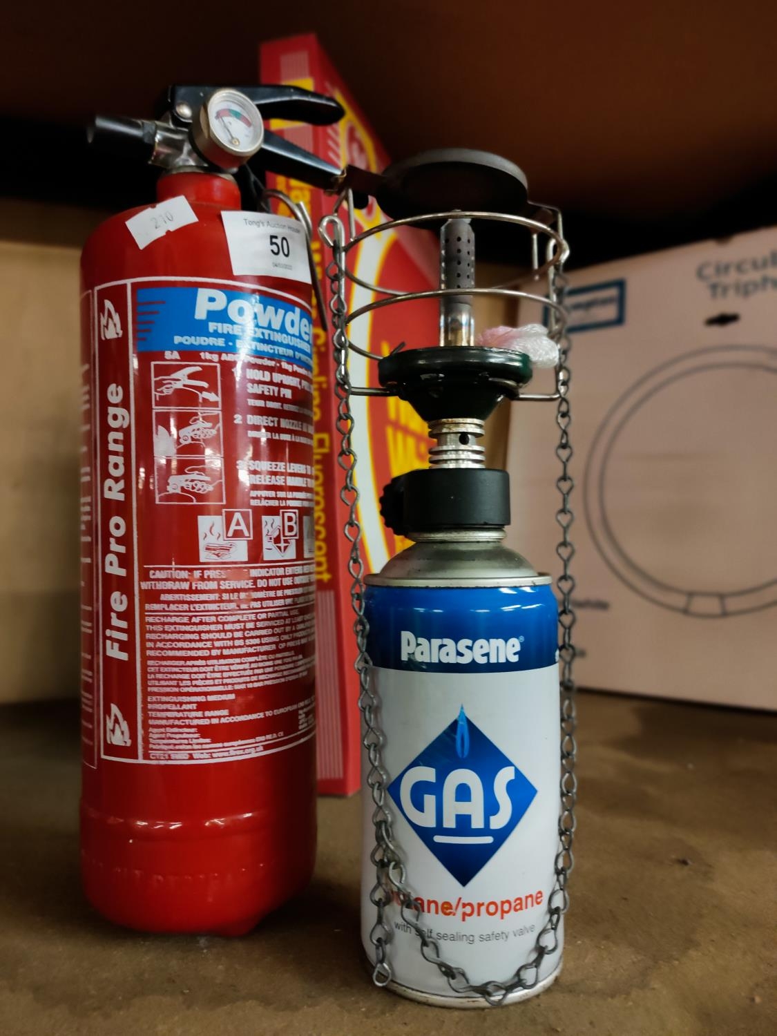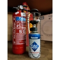 POWDER FIRE EXTINGUISHER ALSO A PROPANE GAS LIGHT WITH MANTEL