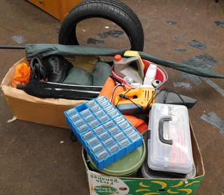 2x Boxes of fishing etc inc car items