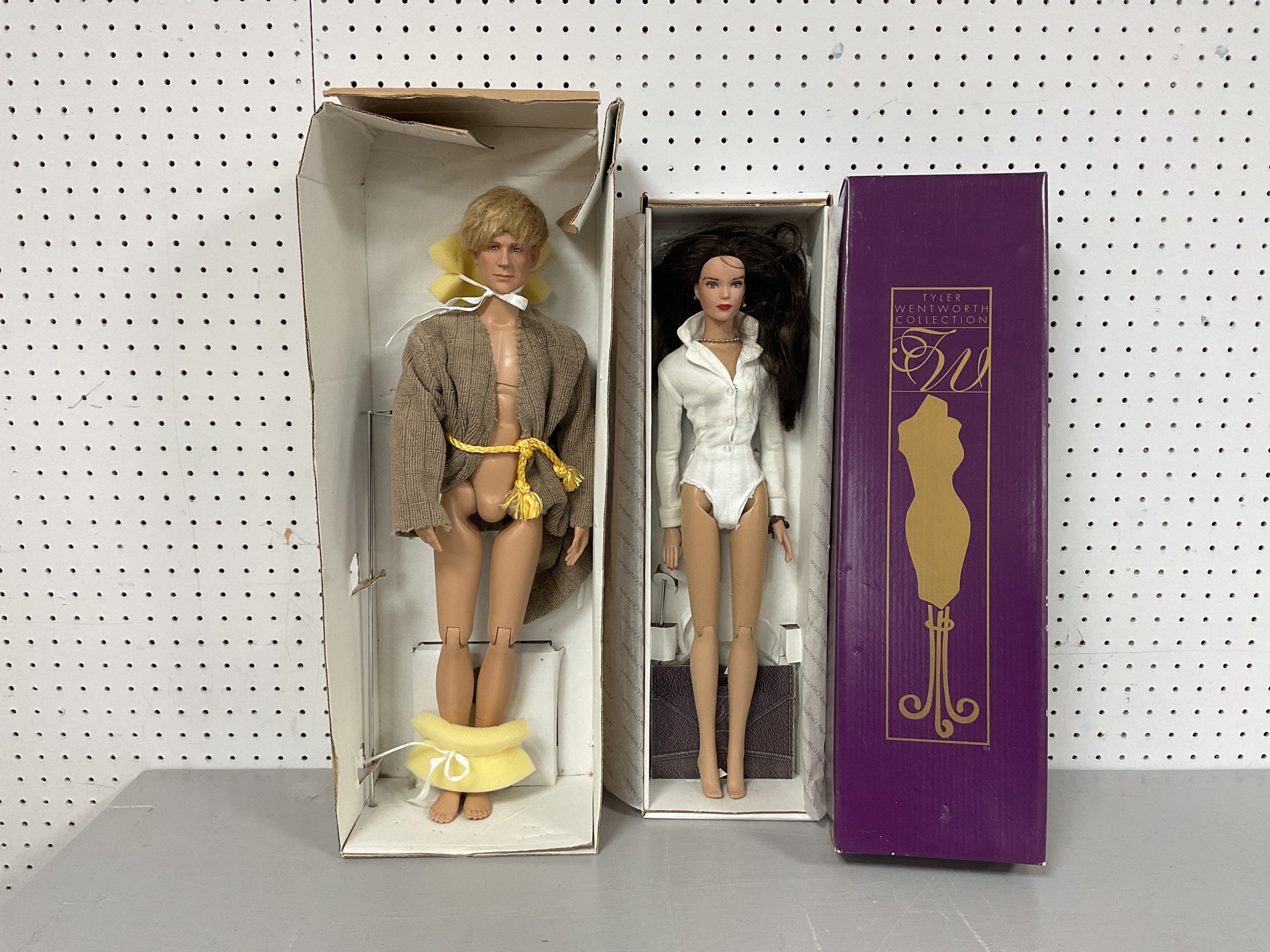 A Daniel Craig Golden Compass Lord Asriel At Oxford Tonner Doll (Hair Loose and Dressed Only In A Robe / Gown). Approximately 17" Tall, With Stand. Outer Box Missing. Together With A Boxed Robert Tonner Doll, Tyler Wentworth Collection. Signature Style - AR Brunette TW0305, With Stand. Small Marks Noted.