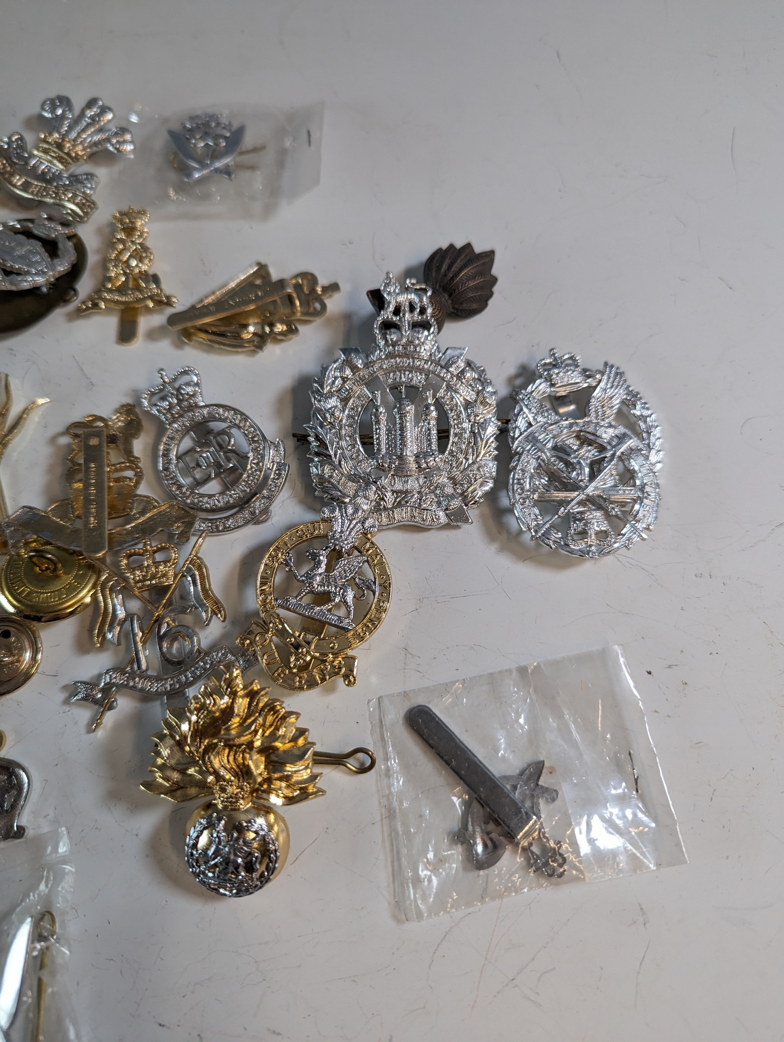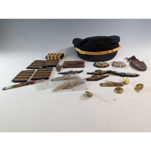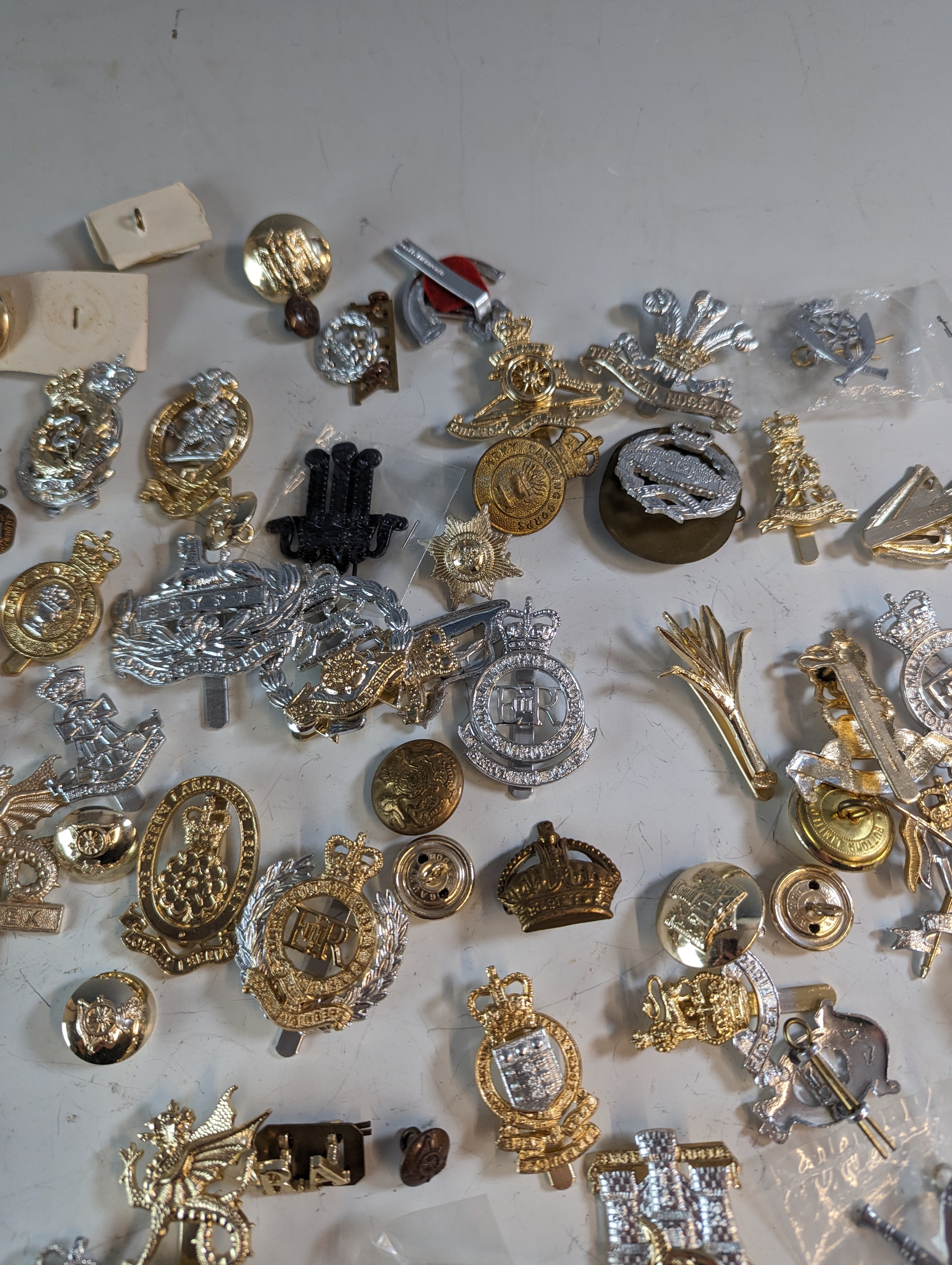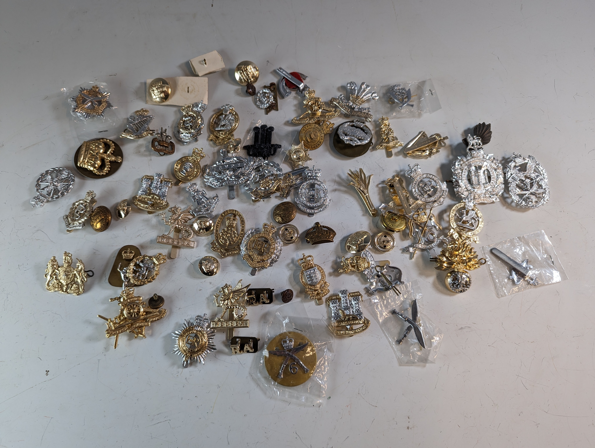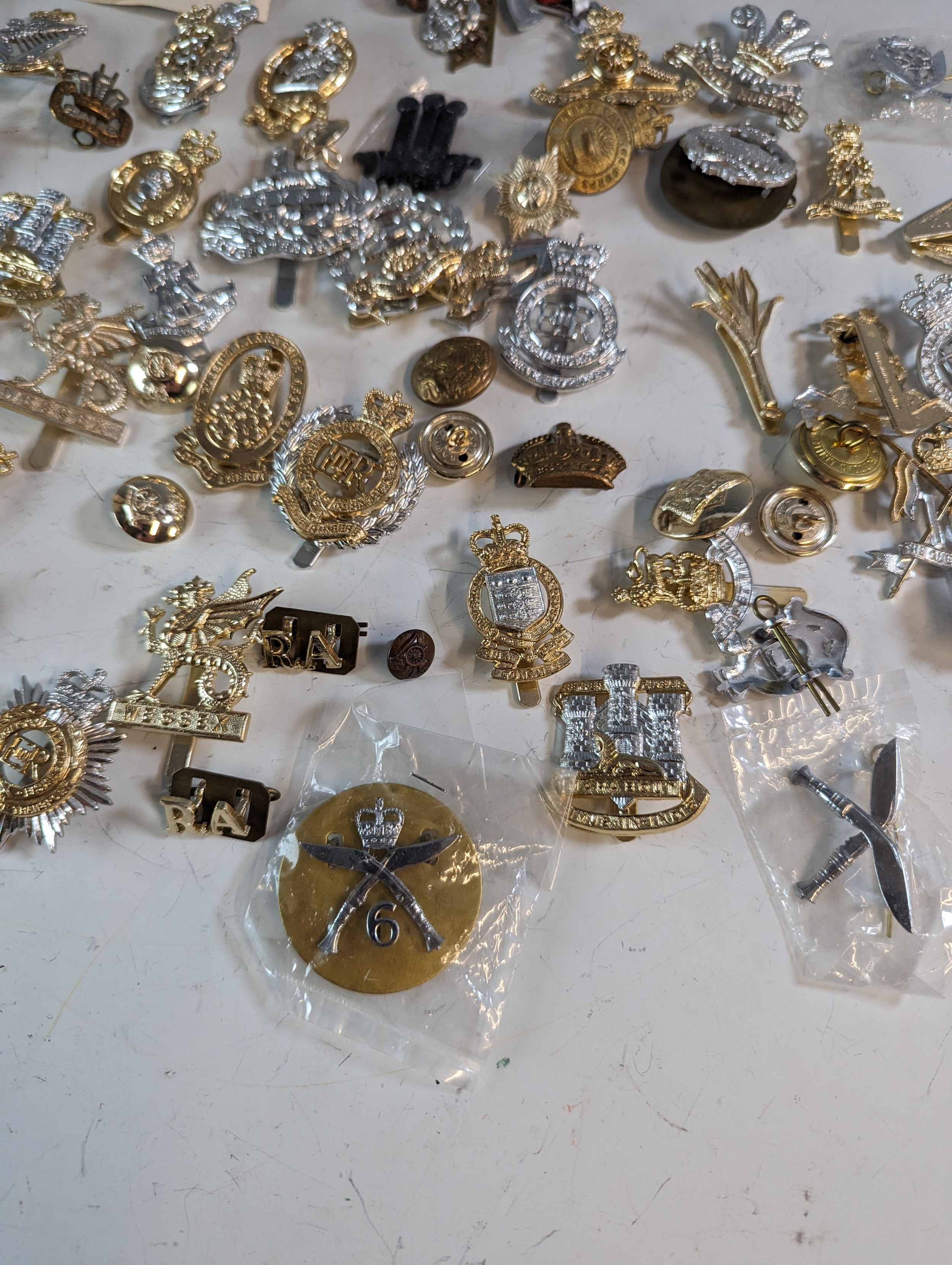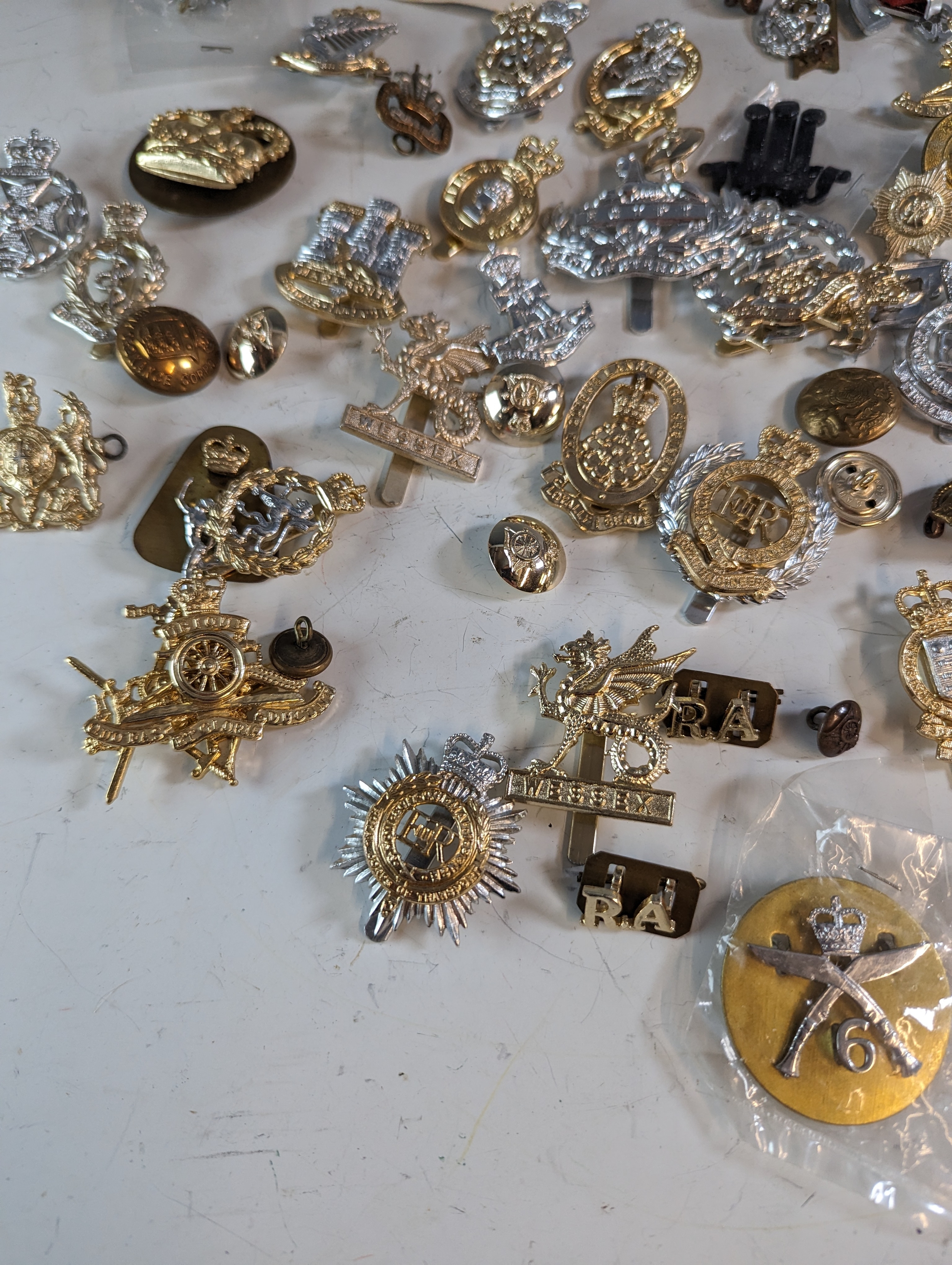 Collection of military badges and buttons