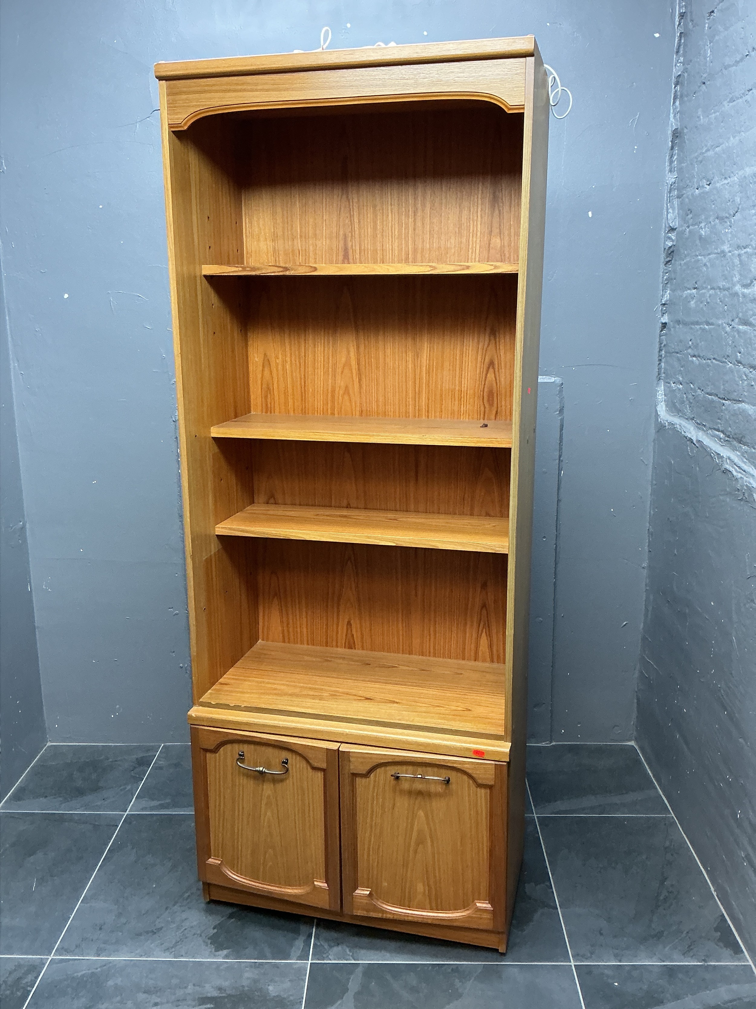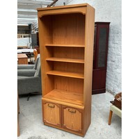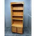 A Modern Oak Effect Three Shelf Over Two Door Illuminated Bookshelf - Approx 43cm x 74cm x 195cm. Lights Up When Tested