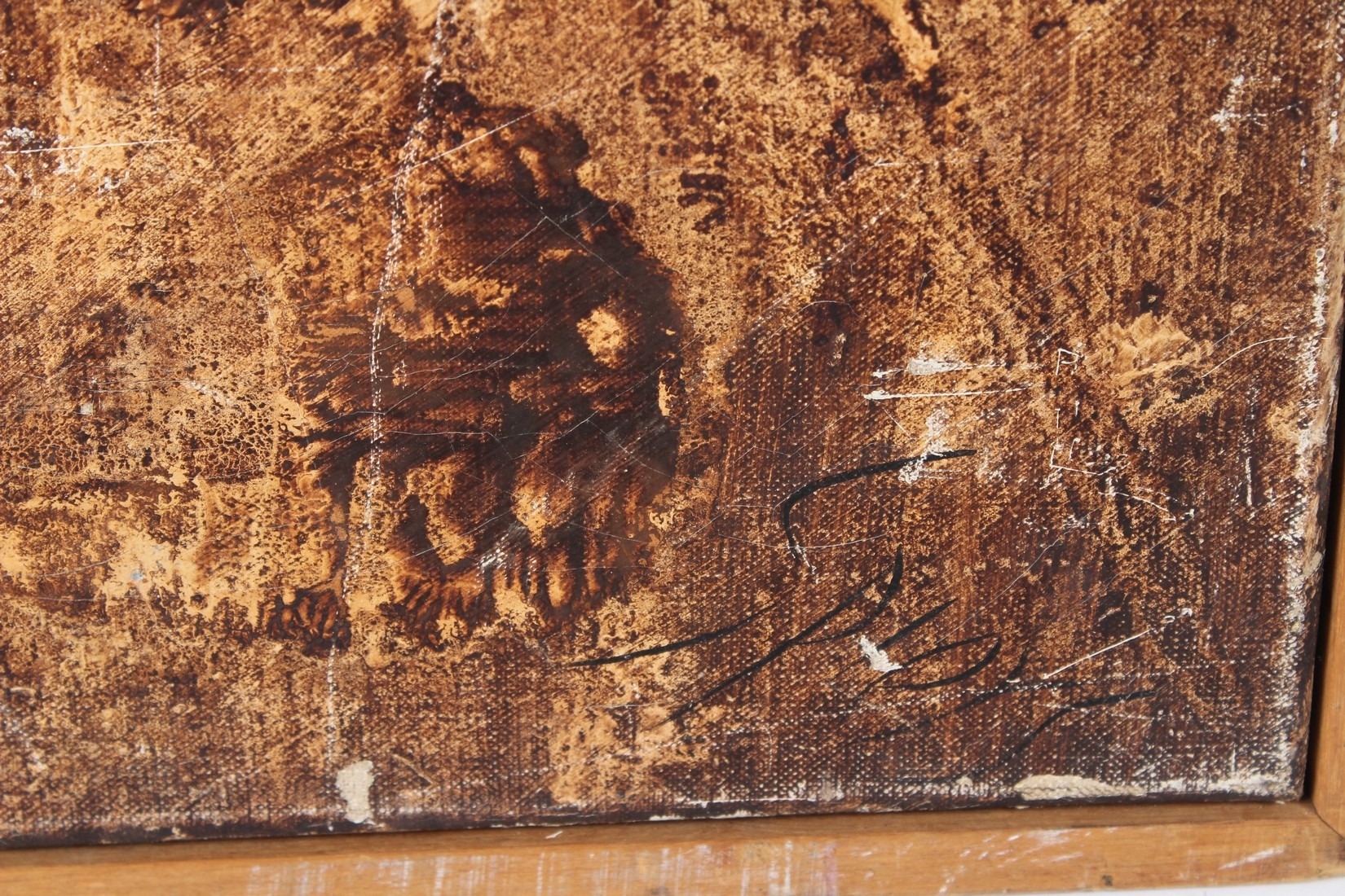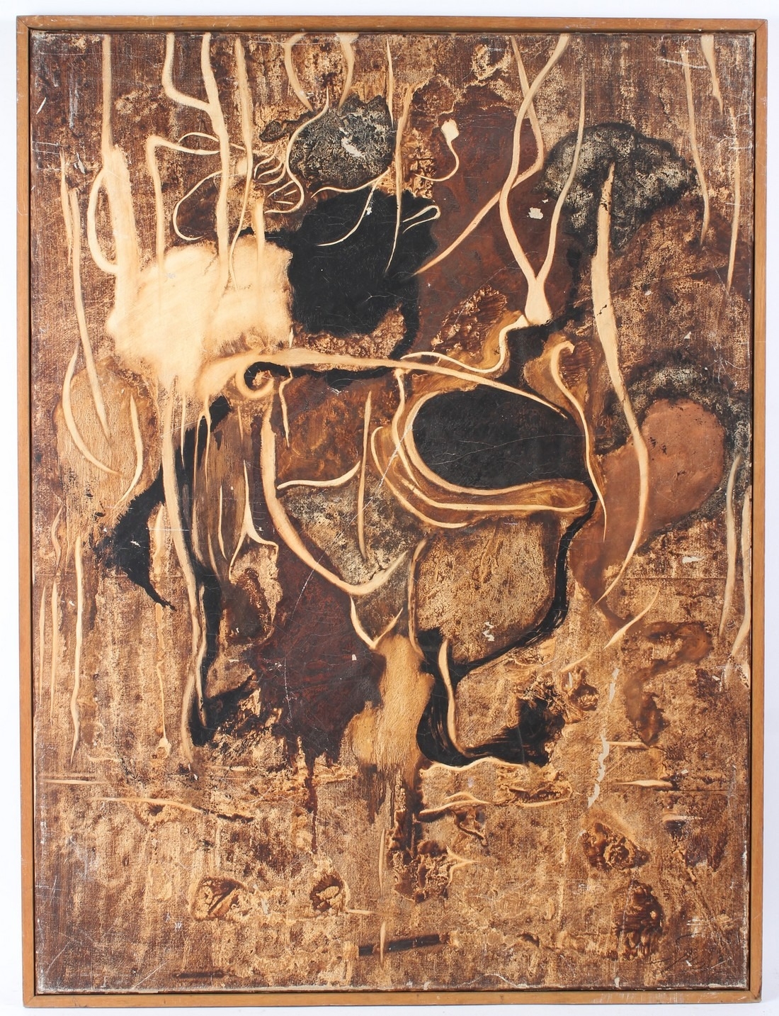 MID 20TH CENTURY BRITISH 'Organic Forms I' oil on canvas signed indistinctly (Spiers?) inscribed on stretcher 102 x 76cm (a/f)
