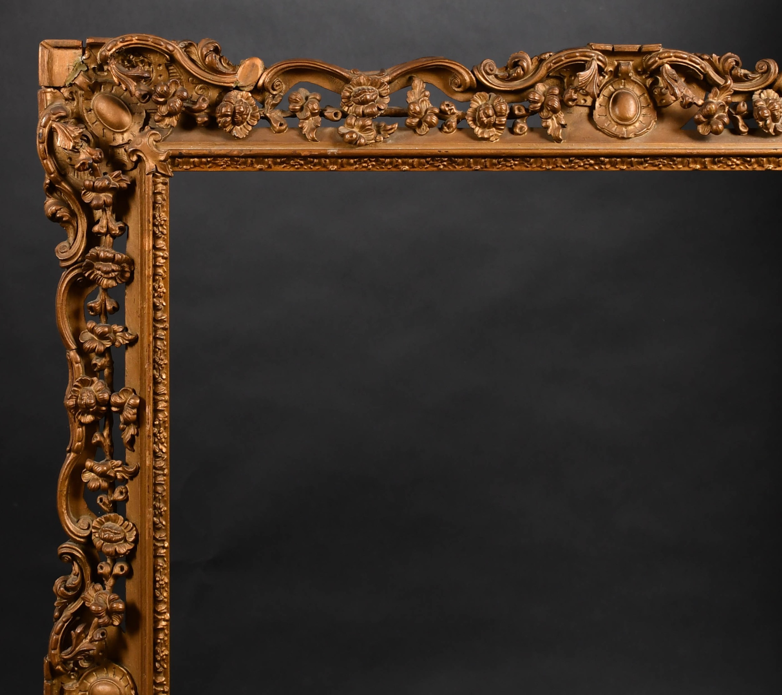 19th Century English School. A Gilt Composition Frame, with pierced centres and corners, rebate 28.5" x 24.5" (72.4 x 62.2cm)