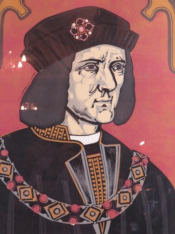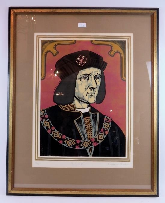Graham Clarke (British, b. 1941) - 'Richard III', pencil signed limited edition coloured woodcut print, number 65/75, 58cm x 43cm, framed.