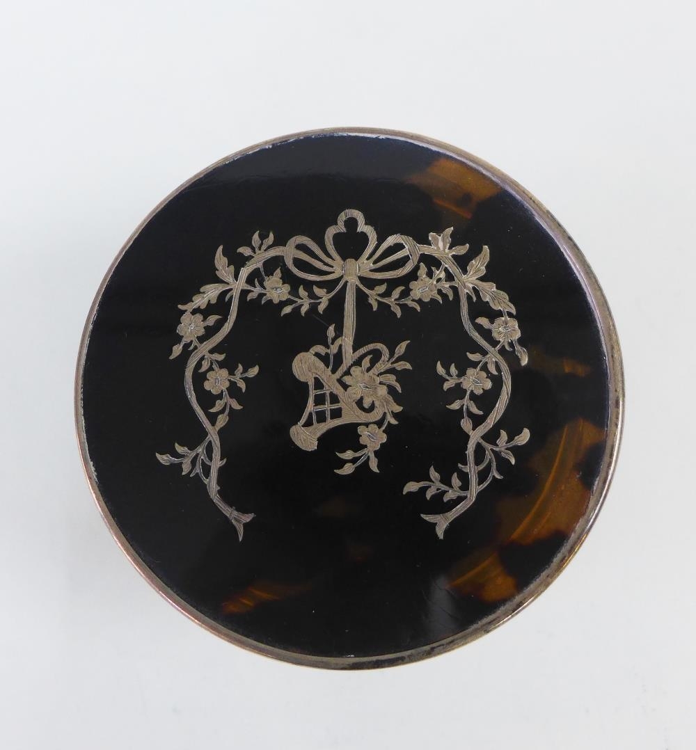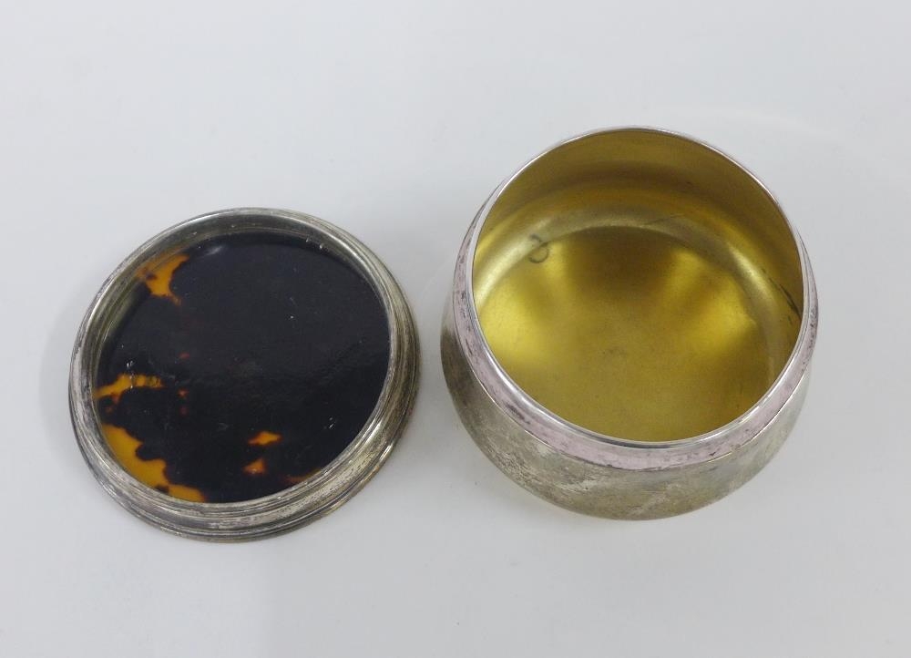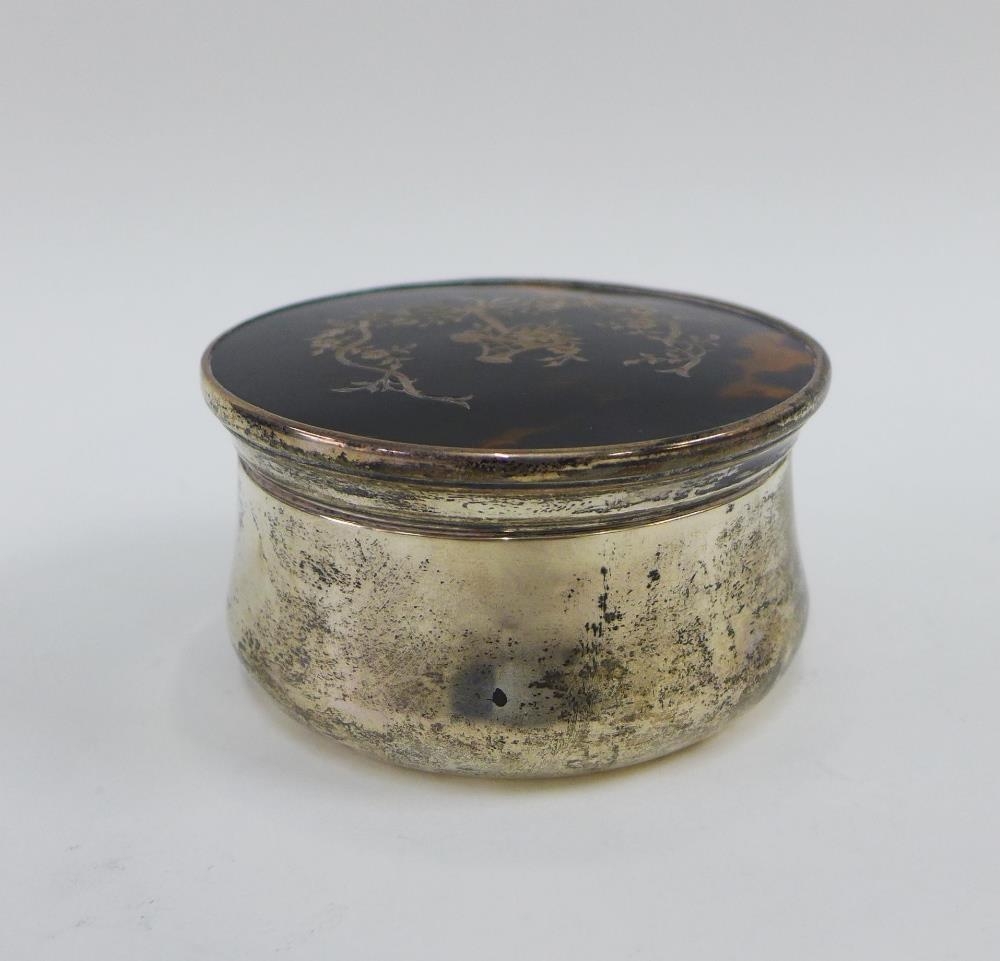 Edwardian silver and tortoiseshell box and cover with inlaid pique work pattern to the lid, Birmingham 1907, 8cm