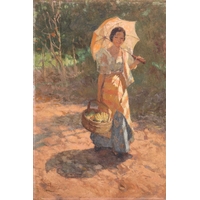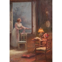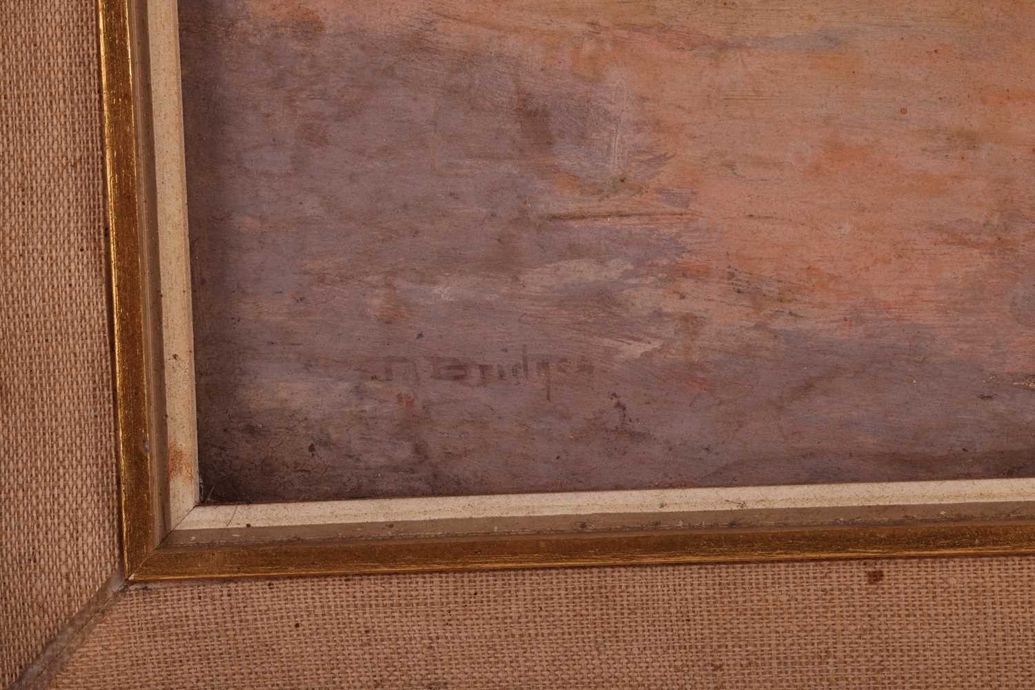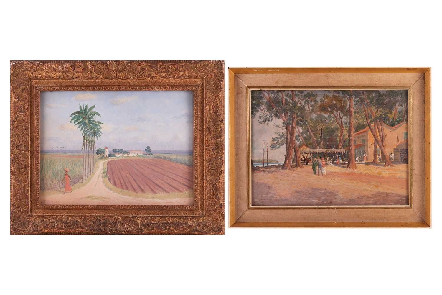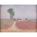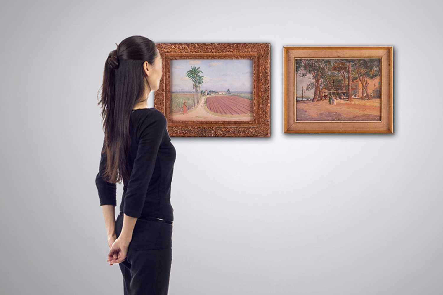 Sir George Tom Molesworth ?Tom? Bridges KCB KCMG DSO (British 1871?1939) Plantation road with figure; & Waterfront cafe two, both signed 'T.Bridges' (lower left) both oil on board one 29 x 38 cm, framed and glazed 44 x 55 cm, the other 28 x 38.5 cm, framed 39.5 x 49.5 cm Provenance: By descent within the family of Lieutenant-General Sir George Tom Molesworth ?Tom? Bridges KCB KCMG DSO (1871?1939), Governor of South Australia (1922?27), soldier, writer and painter. Footnote: Sir Tom Bridges was a career British officer commissioned from Woolwich into the Royal Artillery in 1892. He served in India and Africa, fought in the South African War (where he was twice mentioned in despatches), and was severely wounded. In the First World War he became briefly famous during the retreat from Mons: on 27 August 1914 at St-Quentin, whilst injured, he rallied exhausted infantry with a toy drum and tin whistle leading them back to the British Expeditionary Force commanded by Field Marshall Sir John French. He later commanded the 19th (Western) Division on the Somme (1916) and at Ypres/Passchendaele, where a September 1917 wound led to the amputation of a leg. He received the DSO, was created KCB and KCMG, and separately from his Boer War notices, was also mentioned in despatches for WWI service. After missions in the Balkans and Middle East, Bridges was appointed Governor of South Australia (1922?27). He painted seriously, studying at the Slade and exhibiting in Adelaide and London. Bridges cultivated an eccentric public image. During the war he kept a pet lion, ?Poilu,? which was often found wandering the trenches; press reports in 1917 wrote that he requested his amputated leg to supplement his pets poor war diet. He died at Brighton on 26 November 1939, aged 68.