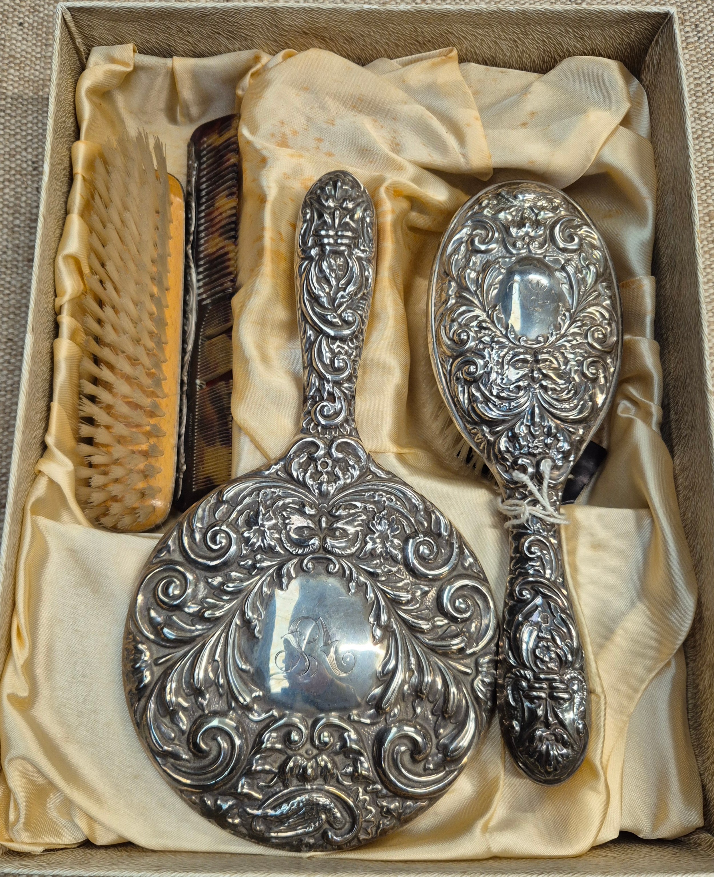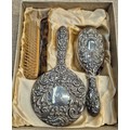 A hallmarked silver dressing table set.