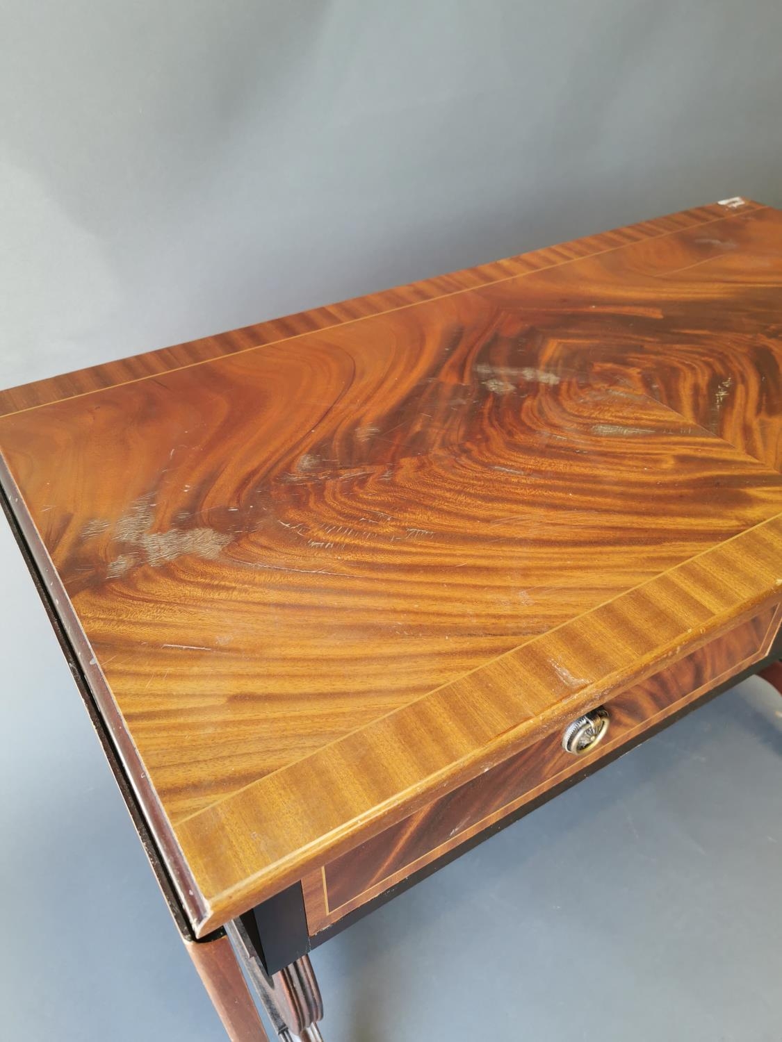 Mahogany inlaid sofa table with two drawers in the frieze on...