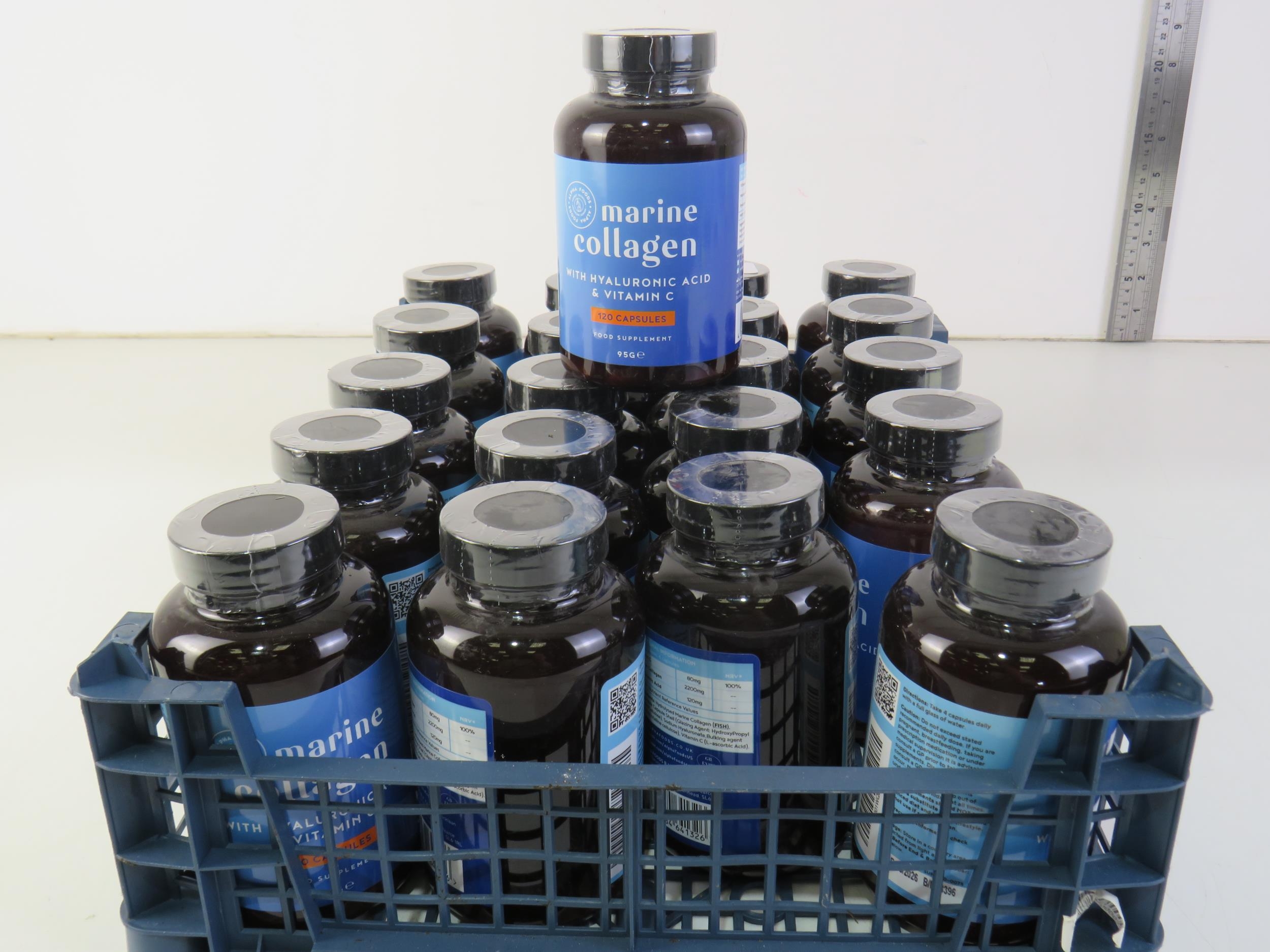 21 x 95g bottles of 120 capsules marine collagen with hyaluronic acid and vitamin c-all in date