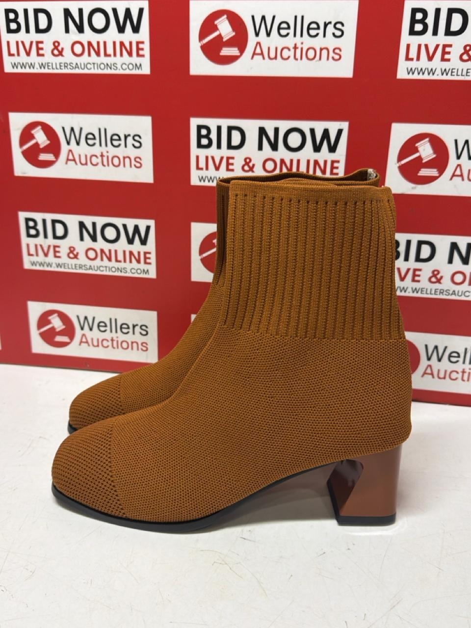 BROWN KNITTED EFFECT BOOTS SIZE 39