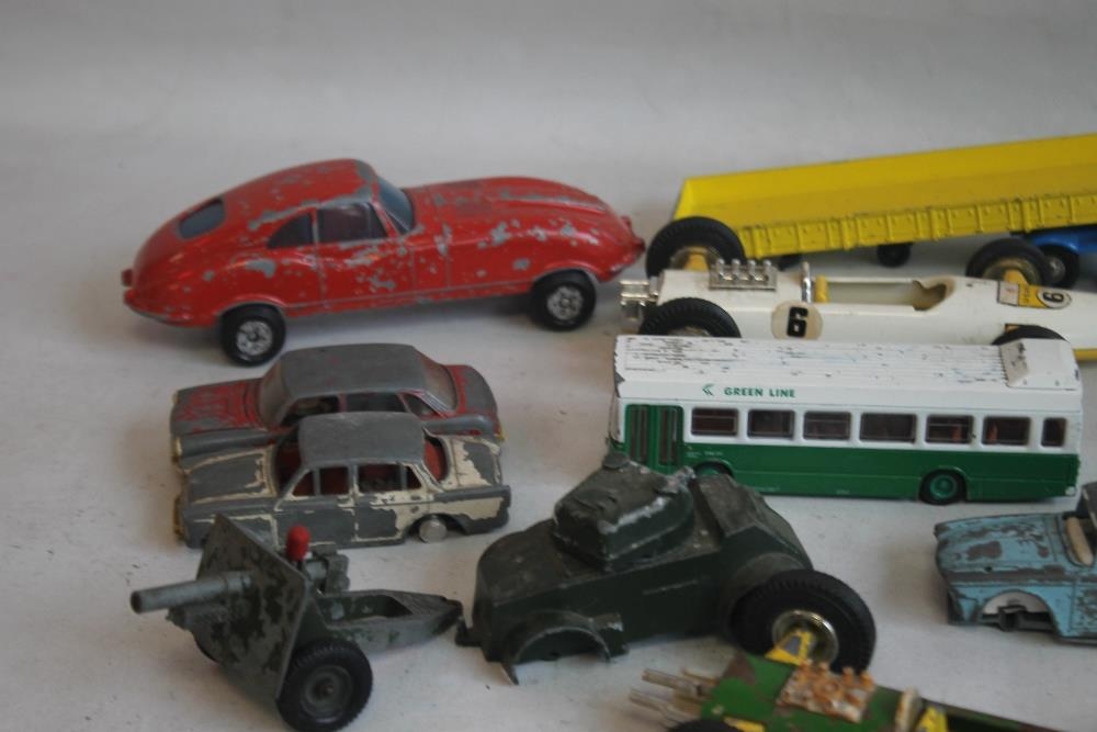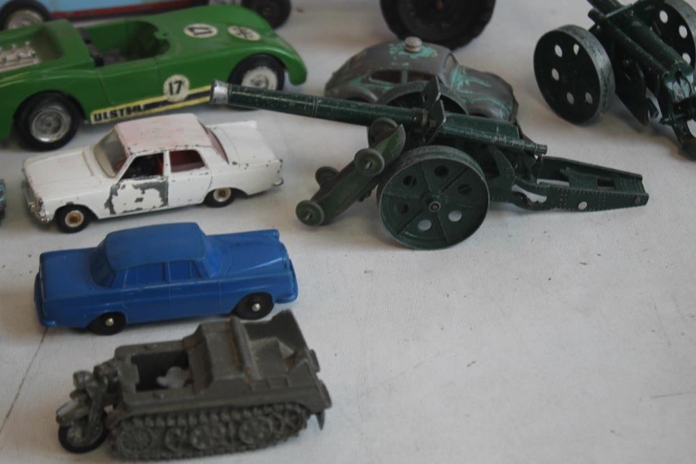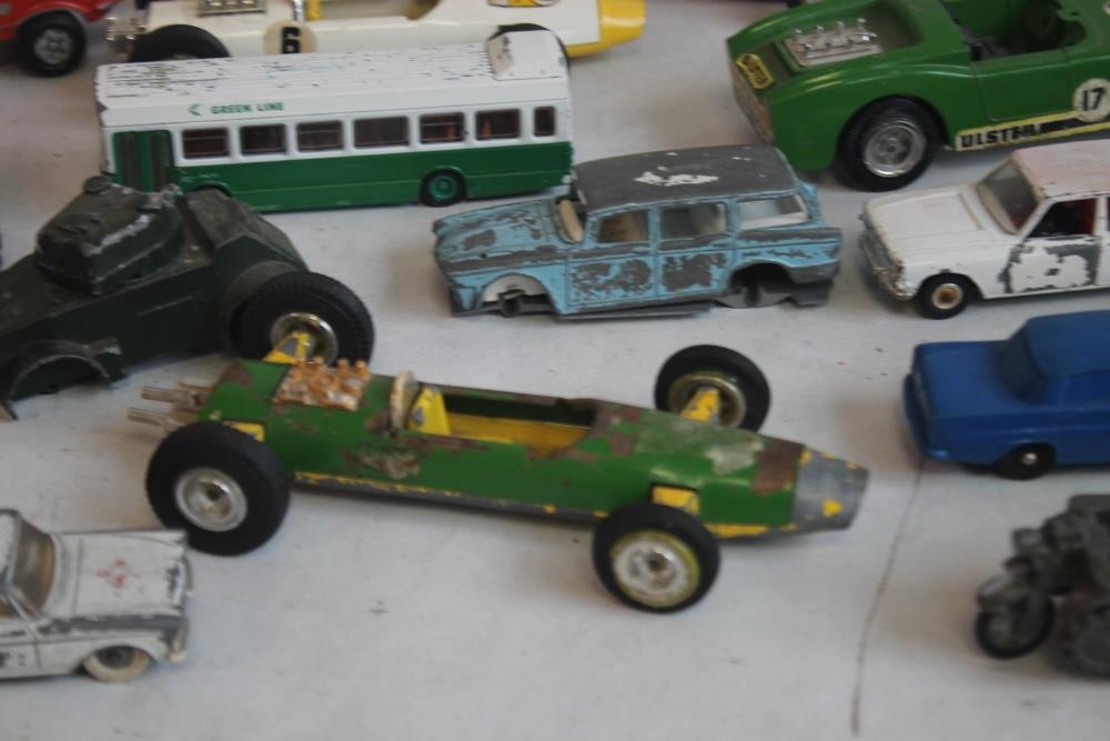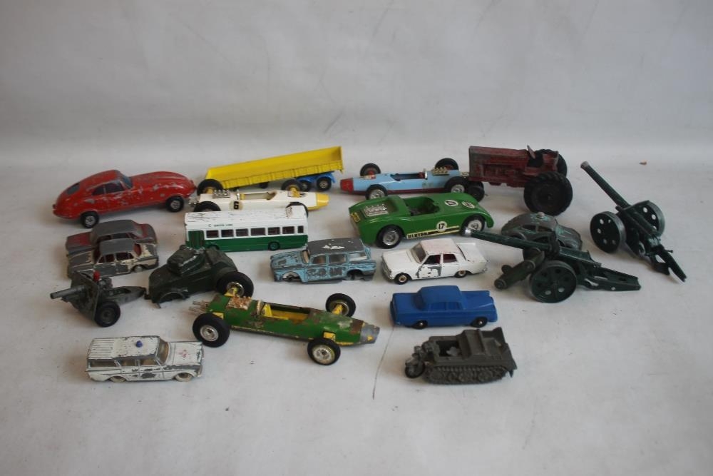 A QUANTITY OF PLAYWORN DIECAST AND OTHER VEHICLES, to include Triang Spot on, Lone Star, Britains etc