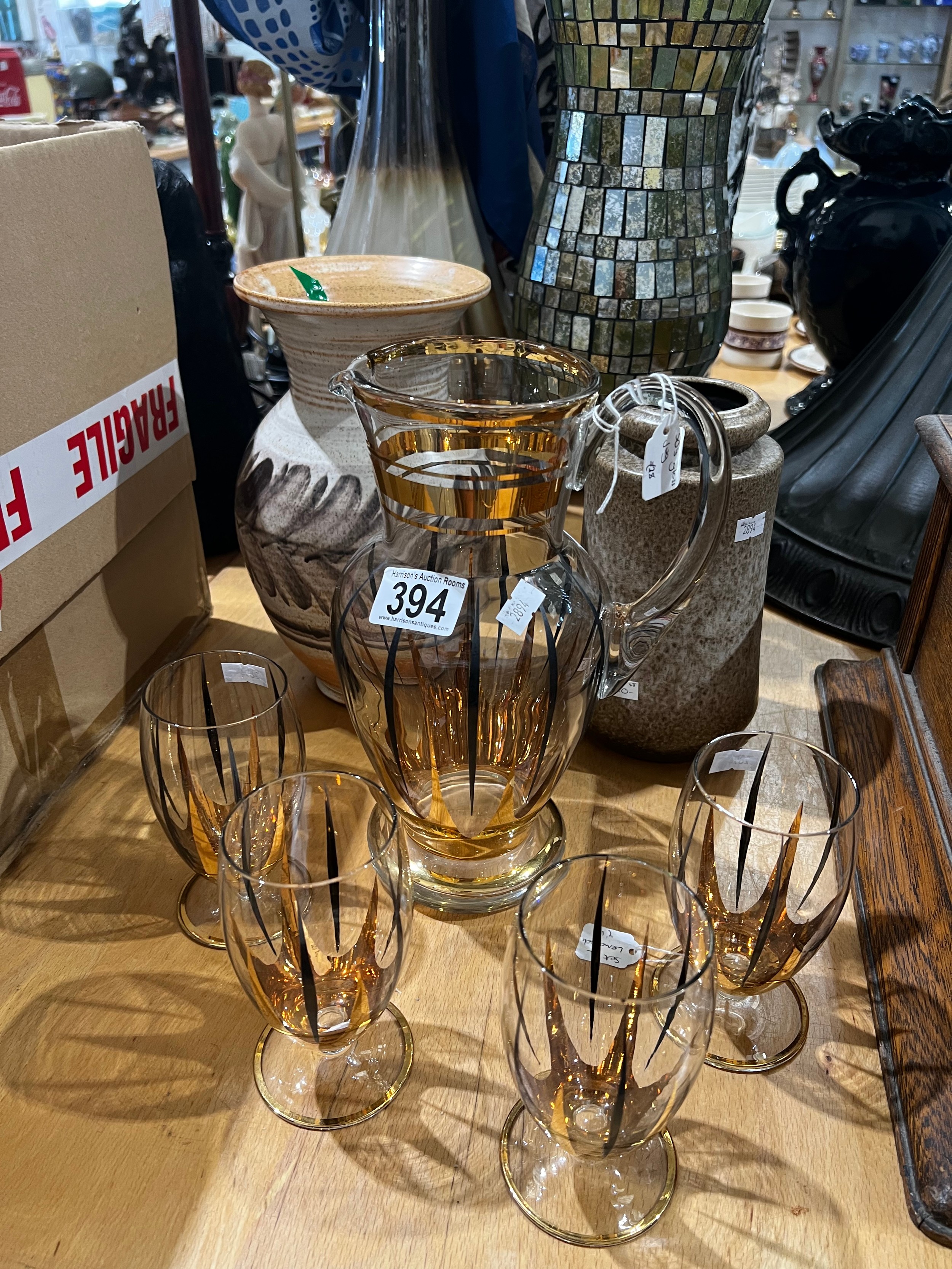 1950's lemonade set, deco vases flags etc