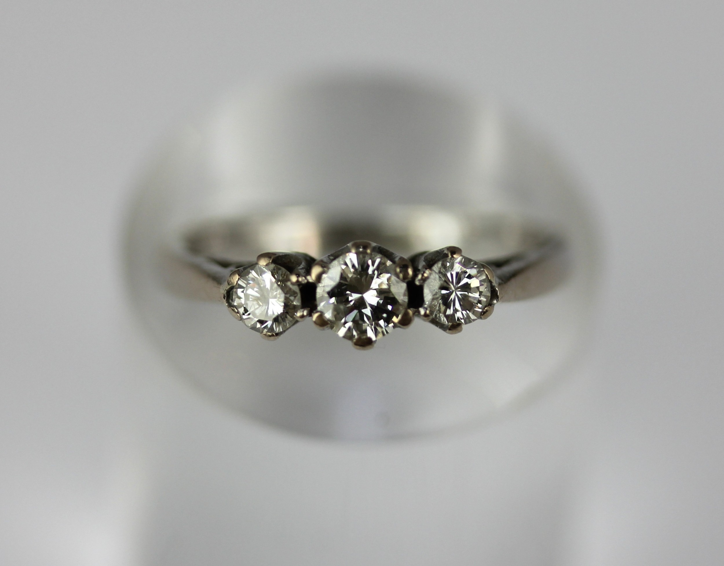 A diamond three stone ring claw set with a row of circular cut diamonds size P and 1/2 gross weight 4g