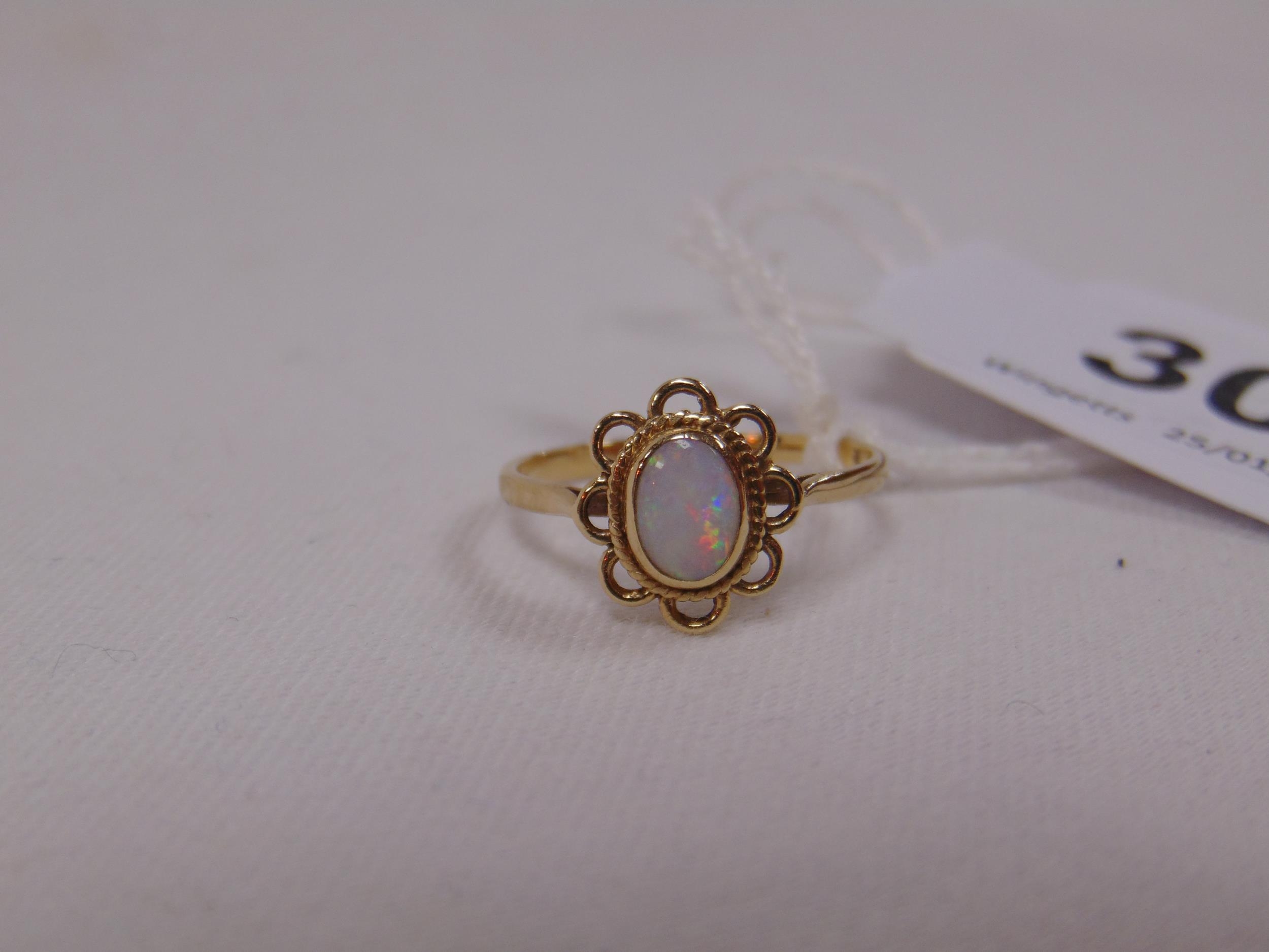 9ct gold opal ring, size T, 1.8g.