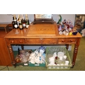 19thC Oak Desk with clerks top and two drawers over turned legs and casters