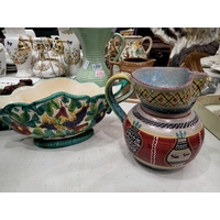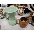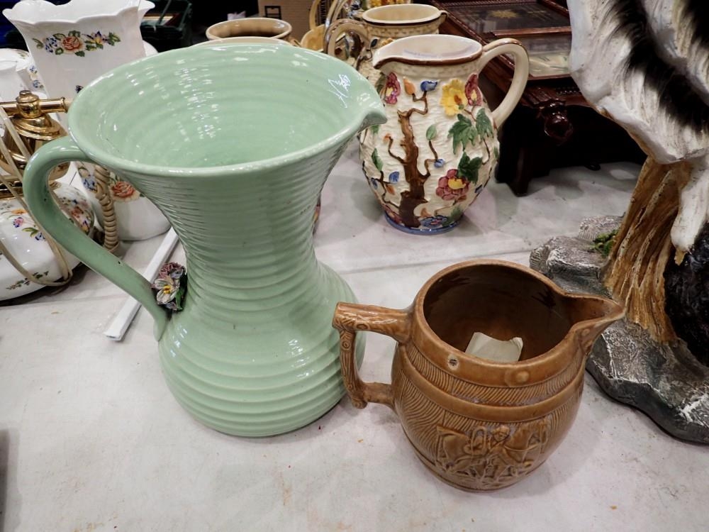Large Art Deco ribbed jug, with a treacle glazed water jug, largest H: 25cm. Not available for in-house P&P