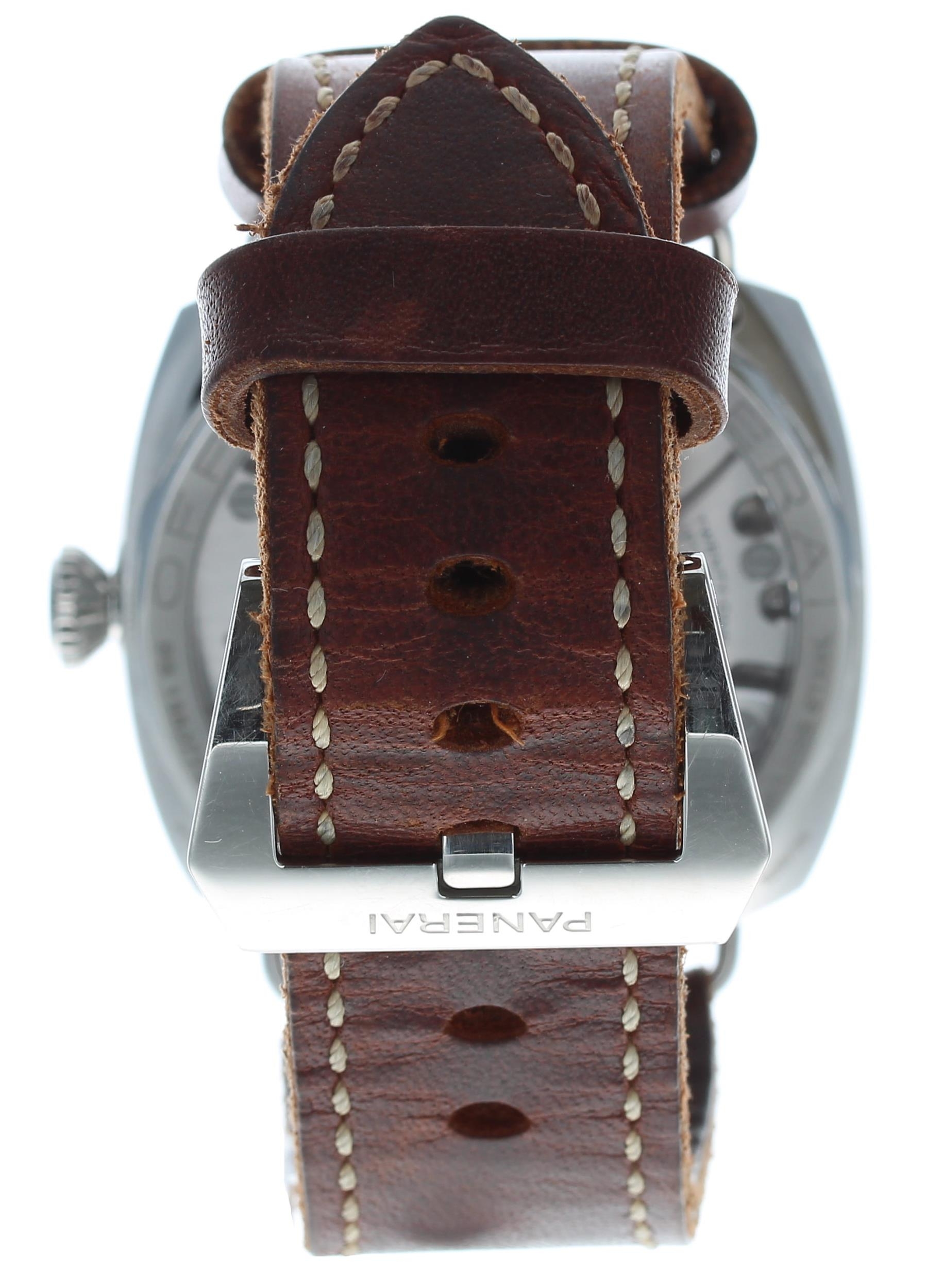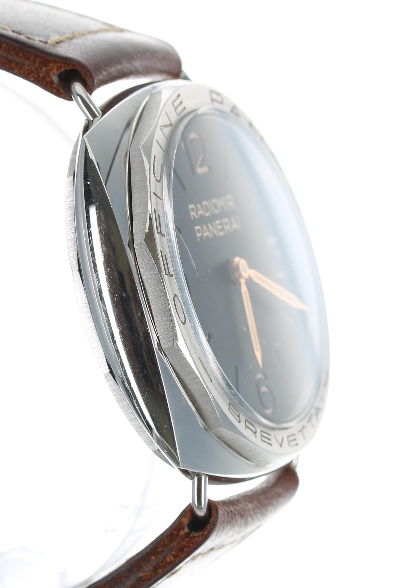 Panerai Radiomir Brevettato stainless steel gentleman's wristwatch, serial no. BB 18507xx, T02xx/10xx, black dial, exhibition case back, cal. P.3000 21 jewel manual wind movement, Panerai brown leather strap with Panerai buckle, 47mm (366)