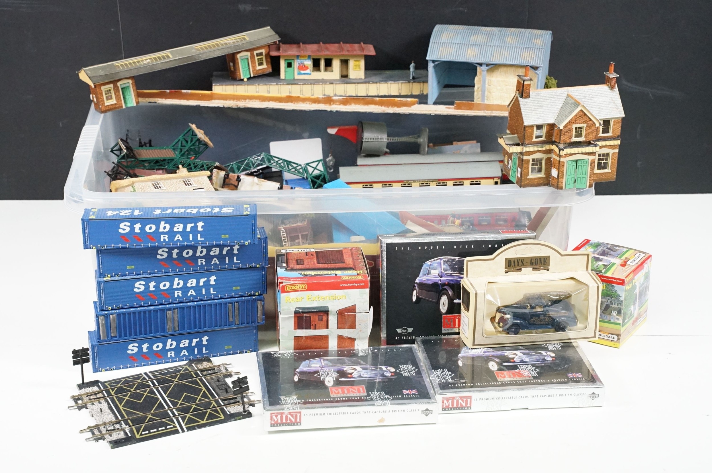 Quantity of mixed model rail to include boxed Hornby Skaledale R8691 Rear Extension, boxed Hornby Skaledale R8575 War Memorial, Hornby Dublo trackside accessories and scenery, boxed Lledo Trackside, items of rolling stock, etc