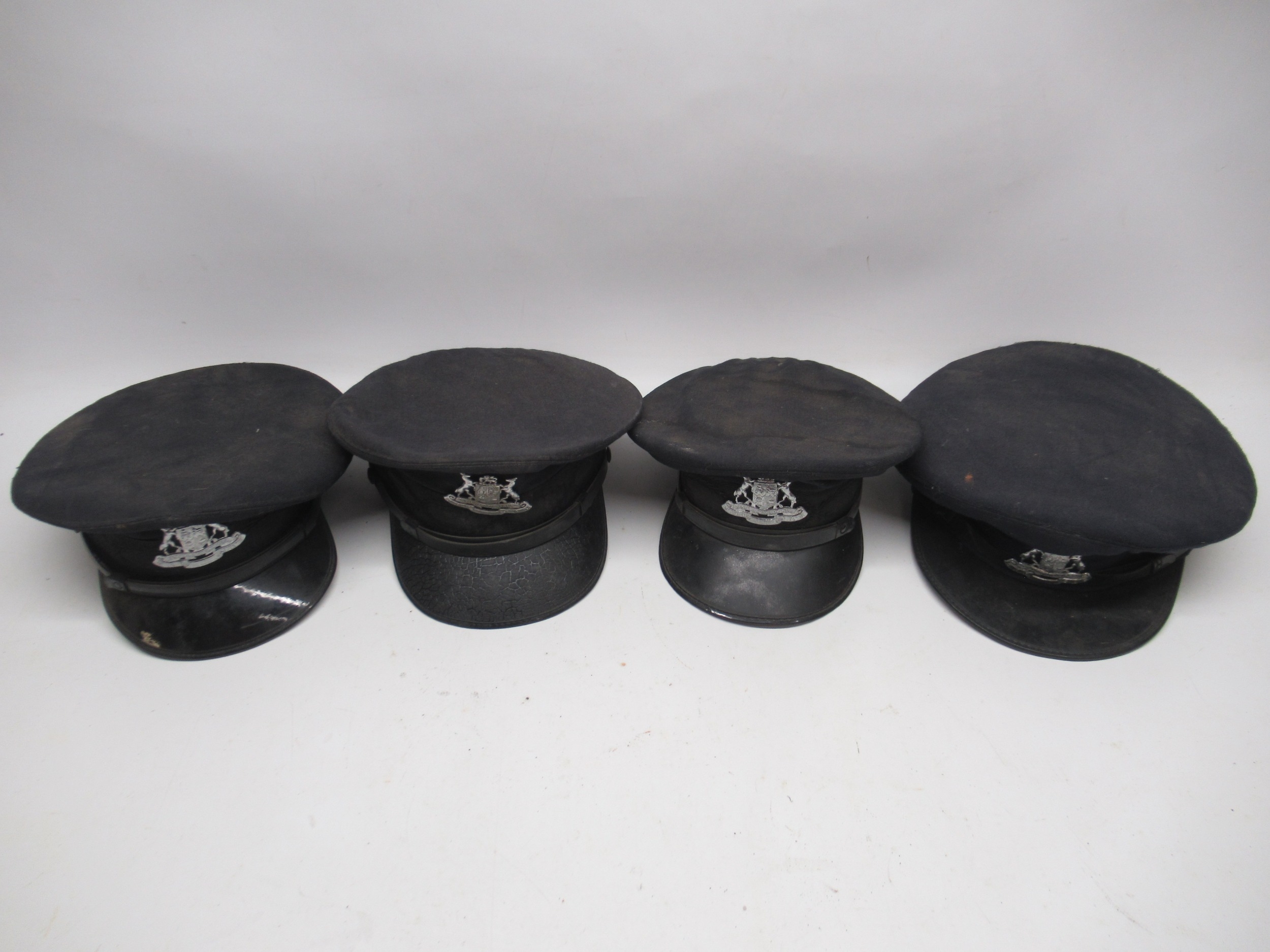 H.J. Henochsberg, Johannesburg, three guard's peaked caps bearing South African Railways coat of arms and one other