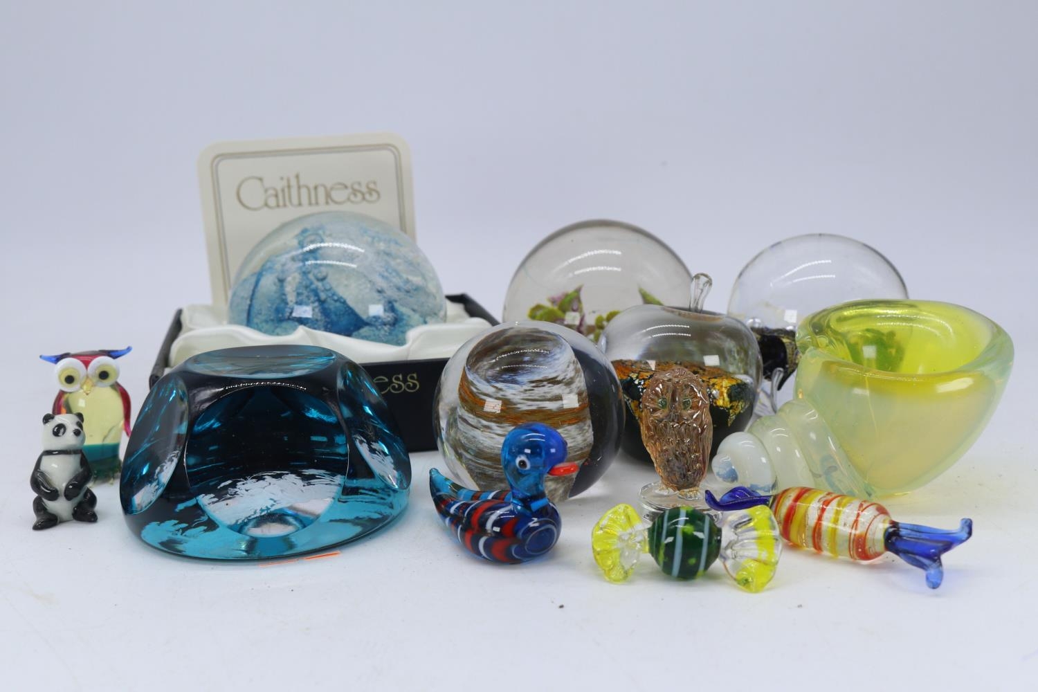 Boxed Caithness Splashdown paperweight together with other paperweights and glass