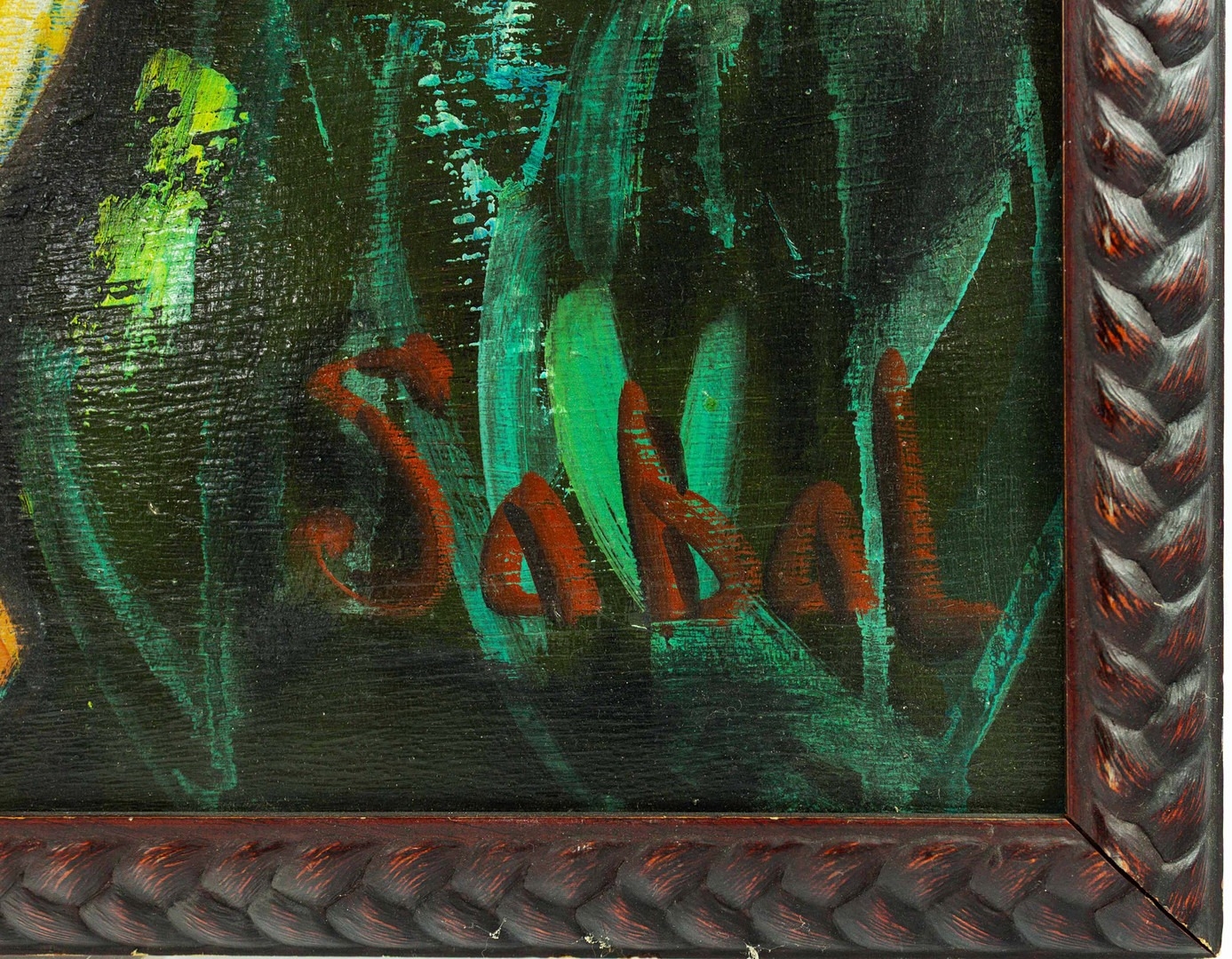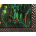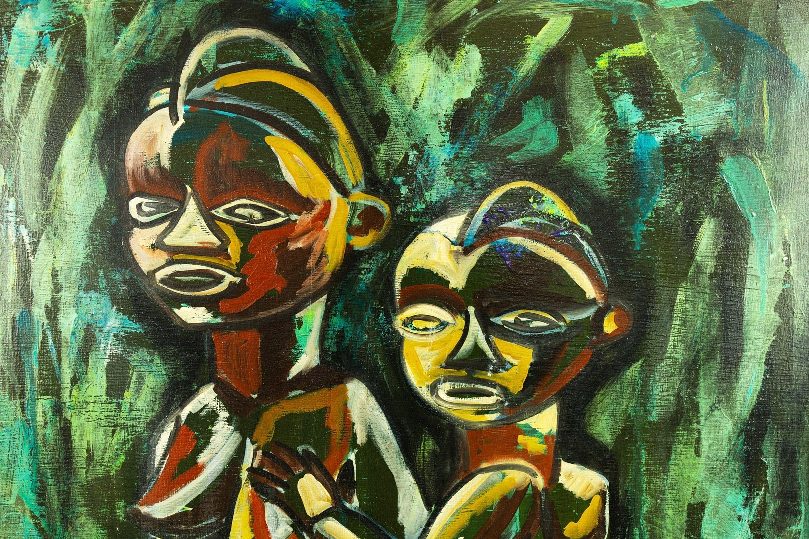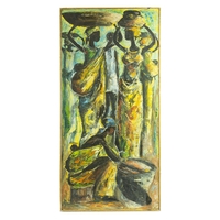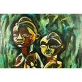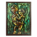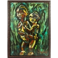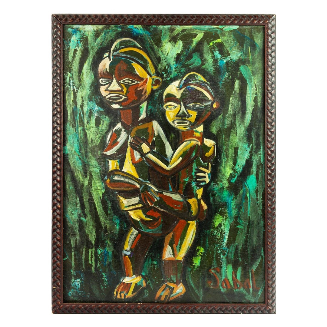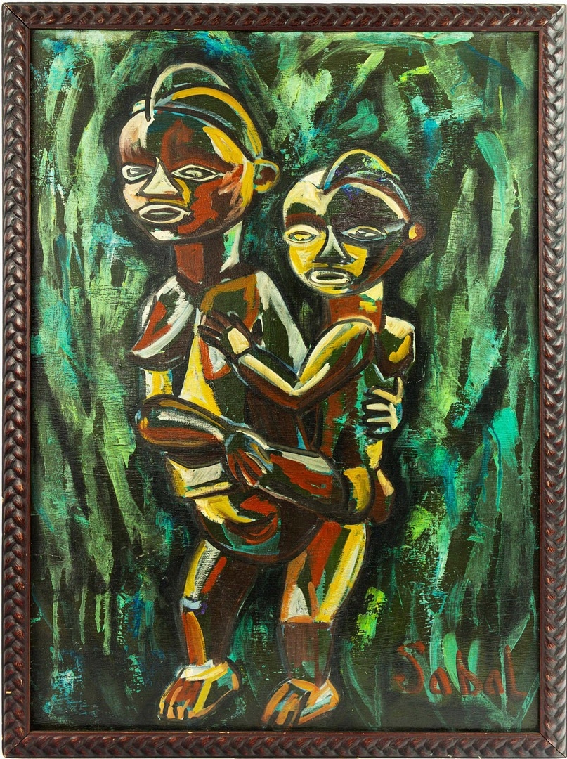SABAL. AFRICAN SCULPTURE MOTHER AND CHILD. Oil on Panel, 54cms x 74cms, signed, framed.
