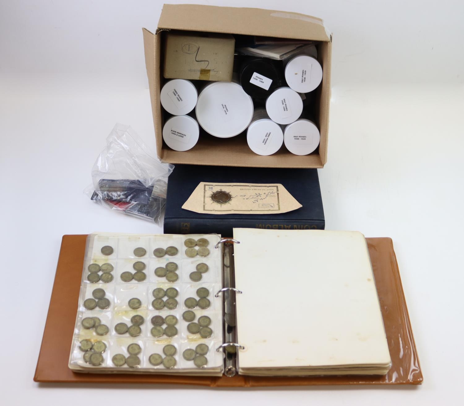 GB & World Coins in a box and two albums. Includes silver. H...