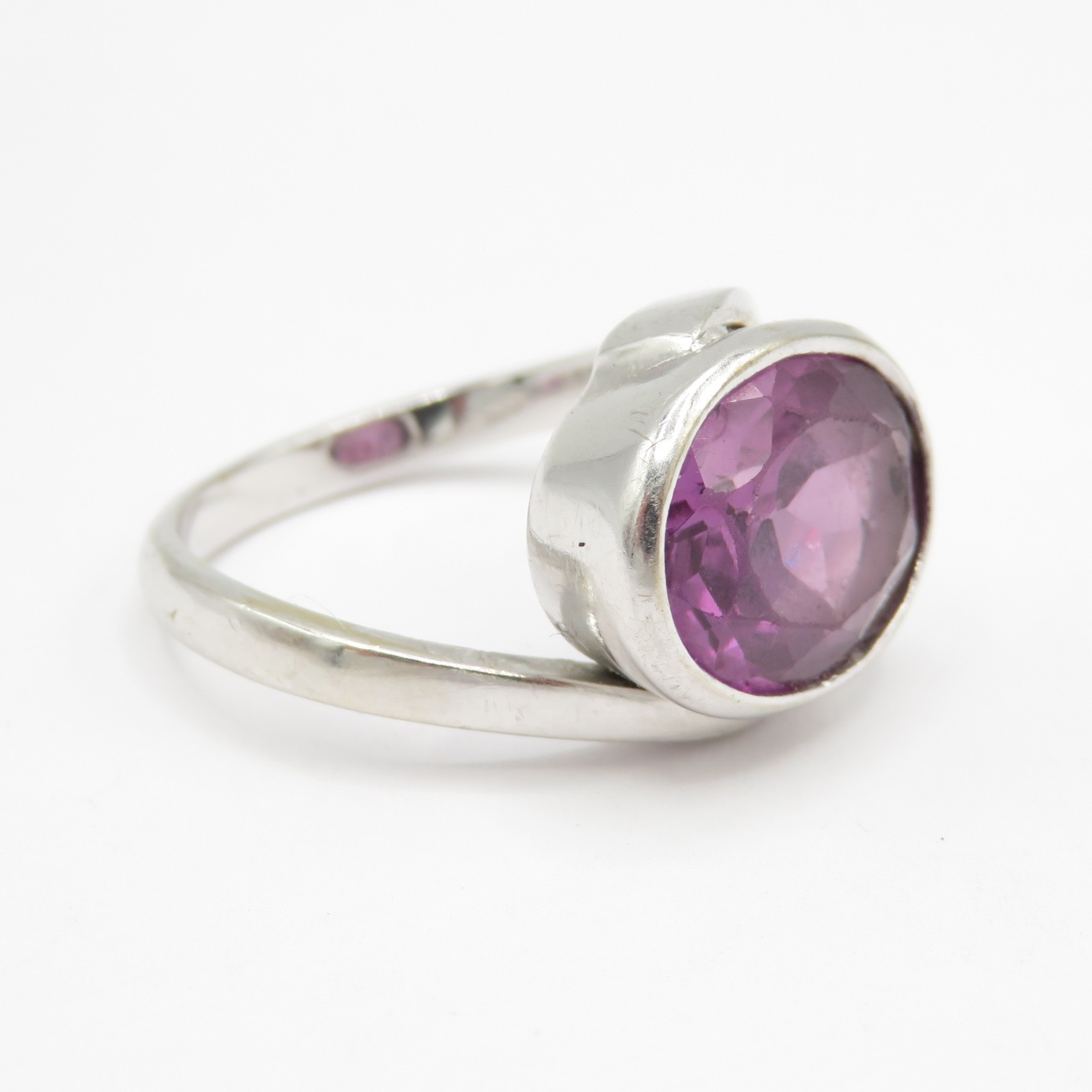 9ct white gold synthetic colour changing sapphire statement ring (5.3g) Size L 1/2